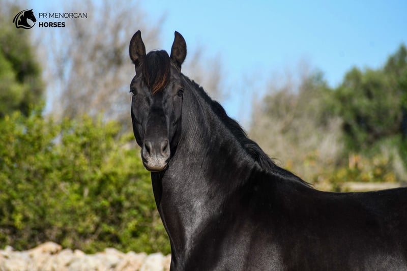 Unique opportunity! Stunning Andalusian stallion for sale, born in 2021. While he doesn't have a PRE passport (his mother didn't have one), he is the son of a majestic PRE stallion from the renowned Military Stud. With his sleek black coat and current height of 152 cm (he’ll continue growing until 6 years old), this horse is the perfect combination of beauty and potential. With the ideal balance of energy for work and a gentle, affectionate nature, he is perfect for those seeking a noble and close companion. He is calm under pressure and remarkably agile, making him the perfect partner for dressage, eventing, or working equitation. His calm demeanor also makes him ideal for relaxing trail rides. This remarkable horse is already familiar with basic handling: he picks up his feet easily, works beautifully on the lunge line, is accustomed to a bit and surcingle, and travels stress-free in a trailer. He behaves perfectly with the farrier and can live comfortably in both freedom or stabled environments. He is regularly dewormed and in excellent health. Location: Menorca You can visit him in person, or we can manage the entire purchase process online. We take care of the veterinary exam, paperwork, and transport – no matter where you are in the world! We can also help you organize castration before transport or training livery in Menorca. We’d love to help you find the horse of your dreams, and this may be the perfect partner you’ve been searching for!