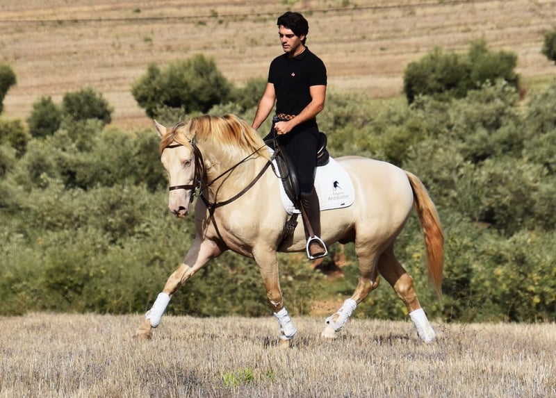 Uprzejmy, spokojny charakter, ciekawski, przytulny, jazda w podstawowych chodach, półbłędne, dużo terenu, Romería, Rocío, zaczęty od hiszpańskiego chodu, barokowy, dobre ruchy, wyjątkowy kolor www.elegante-andalusier.com