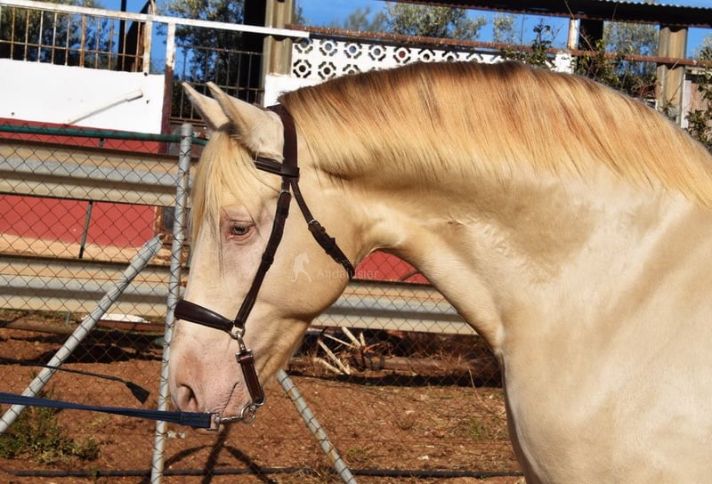 Caractère doux et calme, curieux, affectueux, monté en allures de base, passages latéraux, beaucoup de terrain, Romería, Rocío, débuté en pas espagnol, baroque, bons mouvements, couleur spéciale www.elegante-andalusier.com