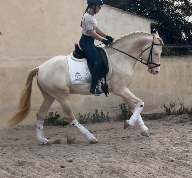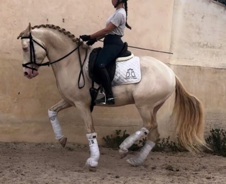 Super cute perlino PRE stallion from 2019 15.3hh (160cm) piro-free and x-rays available! Currently doing 3rd level + piaffe. This horse has very comfortable and uncomplicated gaits. He will work hard for the rider, but would also be very suitable all-round leisure horse. He's good the looks, the gaits, the patience and the correct work ethics... all combined in this adorable, compact horse. Don't miss out on him!!! Worldwide transport available 🌏 Do not hesitate to contact us for more information! +31626050647 orionelitehorses@gmail.com