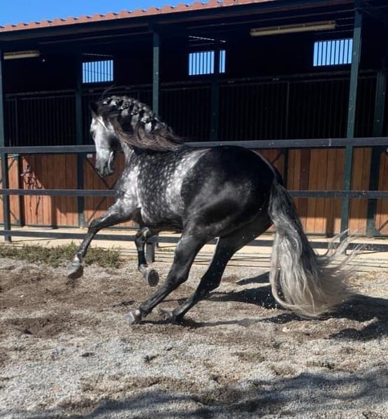 Este hermoso caballo es un semental valido para niños y principiantes. Tiene un carácter adorable. Es posible castrar. Pero no es caliente con yeguas y caballos. Mide con baston 1,59 Sale en campo, calles y carreteras con más caballos. Sano completamente. Contactar al WhatsApp: +34699948844