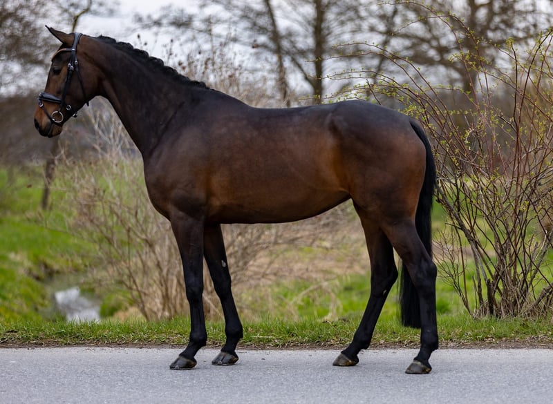 This expressive, dark brown 5-year-old mare captivates at first glance with her harmonious appearance, elegant build, and appealing overall quality. She offers exactly the combination many riders desire: a successful blend of rideability, character, and potential. From a breeding perspective, this mare leaves nothing to be desired: she comes from a top-tier, proven lineage, with both sire and dam producing performance-oriented and high-quality dressage horses. This genetic excellence is clearly reflected in her modern type, her movement quality, and her positive work attitude. Already now, she shows an exceptional balance for her age and is a pleasure to ride. She consistently provides her rider with a confident, straightforward feeling, is seat-friendly, and can be ridden consistently and sensitively. She remains well-behaved, clear-minded, and absolutely reliable – a horse you can depend on every day. Her movements are rhythmical, elastic, and characterized by natural quality – an ideal foundation for further dressage development. At the same time, she impresses with her excellent temperament: friendly, affectionate, and always attentive to humans. Thanks to her comfortable size, she is especially suitable for smaller riders or young riders, yet she also offers enough quality for advanced sporting training. She appeals to both ambitious leisure riders and riders with higher aspirations. In daily handling, she is completely uncomplicated, loving, and balanced – a horse that quickly becomes a reliable partner and brings joy every day. A modern, very attractive horse with great presence, excellent pedigree, and a character that could hardly be better. We warmly invite you to get to know her and to try her out – we look forward to hearing from you! Additional horses for sale are also available with us – perhaps your perfect partner is among them. 📍 Location: Rosenheim 📞 Contact gladly by phone or WhatsApp 📧 Also available via email 📸 Due to current weather conditions, further photos will be added in the coming days.