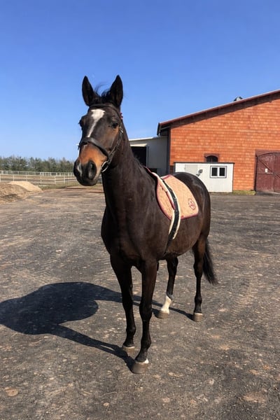 Anglo-Arabo sportivo (Małopolski) – prestigiosa linea sportiva polacca È in vendita un Anglo-Arabo (Małopolski) sportivo di 9 anni. Il castrone è baio scuro, con un evidente segno bianco sul muso e una macchia bianca sulla gamba posteriore destra. Proviene da una linea di allevamento polacca di grande prestigio del rinomato allevamento SK Janów Podlaski. Padre: Drop (Małopolski, nato nel 2001, da Vis Versa, da Dratwa, allevatore SK Janów Podlaski) – Campione degli stalloni – Miglior cavallo a Białka 2003 – Vicecampione dei Campionati Polacchi dei Giovani Cavalli (5 anni) – Stallone affermato con discendenza sportiva Nonno: Vis Versa – Potente stallone Anglo-Arabo con discendenza sportiva di successo in Polonia Il cavallo è attualmente preparato in modo mirato per la partecipazione alle competizioni. Come cavallo da salto con temperamento, qualità ed elevato potenziale sportivo, non è adatto ai principianti, ma a un cavaliere esperto che desideri continuare a svilupparne le capacità. Adatto per salto ostacoli, completo, lavoro in campagna, nonché per attività ricreativa ambiziosa. WhatsApp: +48 798 521 709