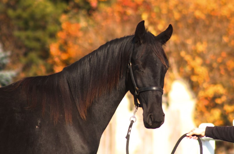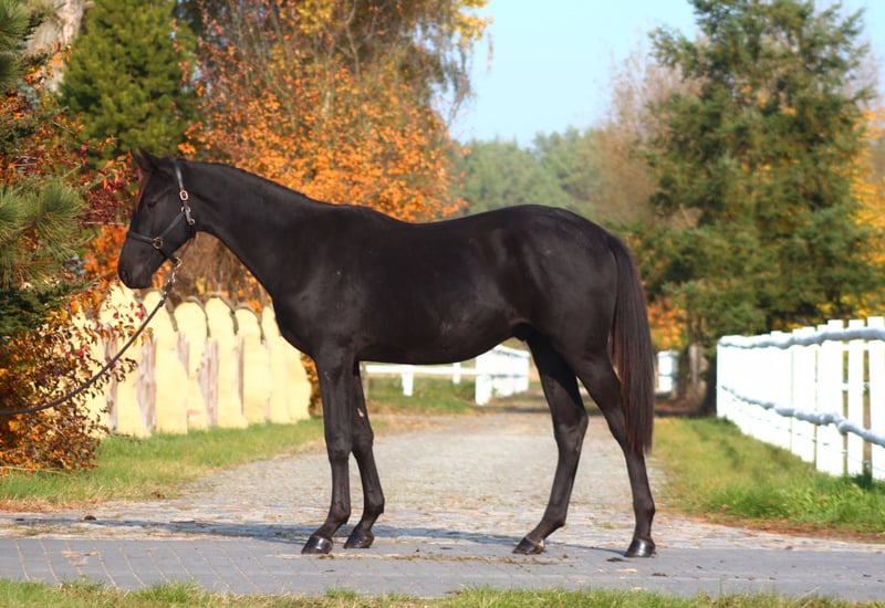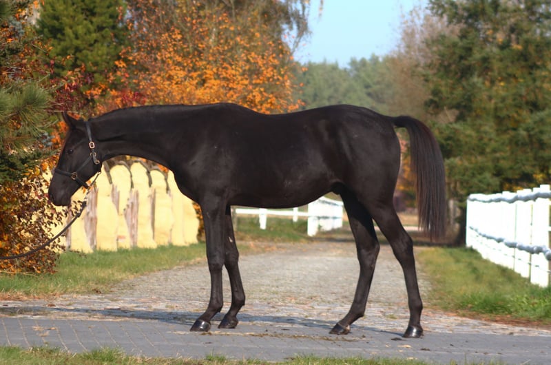 For sale 1,5 yo lovely stallion in BLACK HOMOZYGOUS color (DNA tested) He is by Emark - amazing black dressage polish stallion, compete in high level. (last picture) Also many more best Anglo Arabian horses such as Jalienny , Efekt, Veritas etc...in the pedigree, suitable for dressage, eventing or breeding ! Grandsire The Anglo Arab stallion All That Jazz was imported to Biddesden from Victoria in Australia as a colt. His sire is the Arab stallion SS City Lights who was bred in the USA and nearly 16 hands. His dam is Belingo, an Australian Thoroughbred by Saulingo. Jazz was always a tall colt with great scope to his stride. He has the softest and springiest of canters as all who have been lucky enough to ride him will attest. He was taken through the ranks to advanced level in British Eventing by William Fox-Pitt and went hunting for a season with the South and West Wilts. His foals have been successful in the show ring and have made a promising start in eventing, with their big strides and elegant steady head positions. Also australian, both arabian and thouroughbred horses are well known and appreciated for their hardness and durability and have achieved many successes in international endurance ! LORENZO AA is Of exceptional beauty , long-legged and well built, with elastic and extensive movement. Long neck, beautiful subtle head. He is now 164/5 cm high at 1, 5 yo cm, and final estimate height about 173/5 cm !!! Born and raised on big meadows, pastured every day with a group of youngsters. he has exceptional fantastic character, absolutely people oriented, very friendlty and calm. Full papers, e-passport, vaccinated, dewormed etc. He will be sold ONLY TO A BEST HOME ! Located western Poland near PL/D border . Transportation can be arranged . Contact by WhatsApp + 48 513 179 245