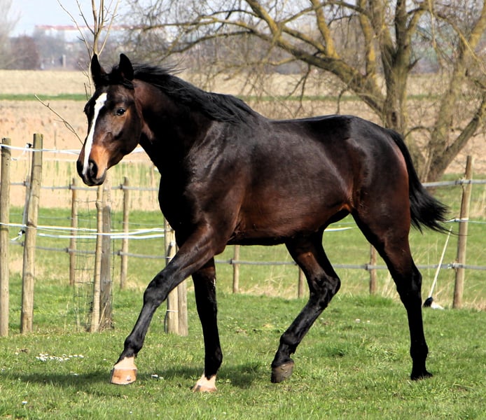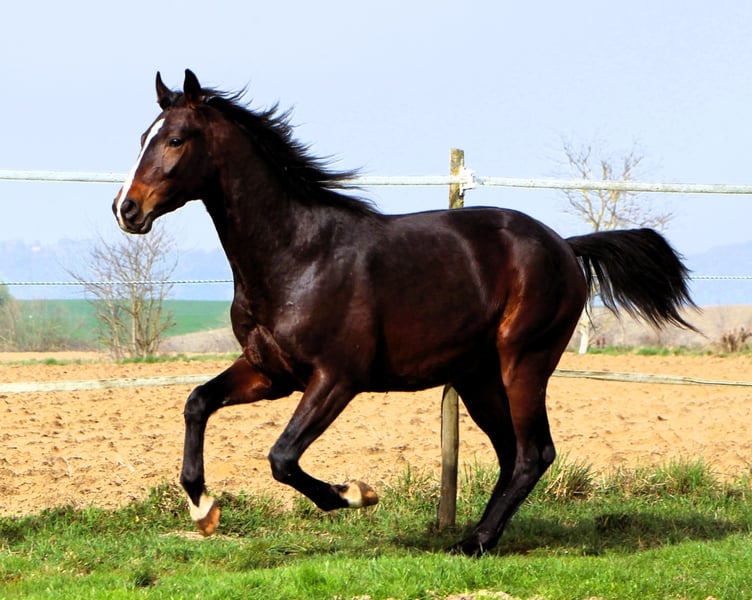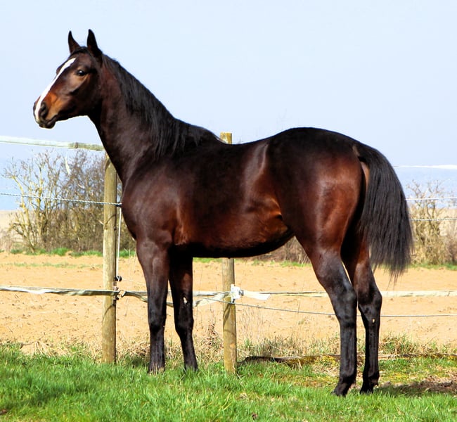 Aston ist ein extrem schicker junger Anglo Araber Wallach. Er hat einen tollen Körperbau, super Gänge und dazu einen ganz lieben Charakter. Arabertypisch ist er sehr anhänglich und interessiert an seinem Menschen, schmust gerne und genießt jede Aufmerksamkeit. Ansonsten ist er recht cool, bei gruseligen Dingen geht er eher hin um zu gucken, als dass er davon springt. Möchte man ihm etwas neues beibringen wie zum Beispiel in den Anhänger zu steigen, benimmt er sich entspannt und wird nicht hektisch. So kann man sich gut vorstellen, dass man Freude an seiner Ausbildung haben wird und er vor allem später auch ein zuverlässiges Geländepferd werden wird. Aston war bis Januar in der Jungpferdeherde, deshalb ist sein Schweif etwas abgeknabbert, dafür ist er aber bestens sozialisiert. Er wurde regelmäßig gehändelt und kennt selbstverständlich alles was ein Jungpferd können muß. Aston steht im Elsaß in 67440 Reutenbourg.
