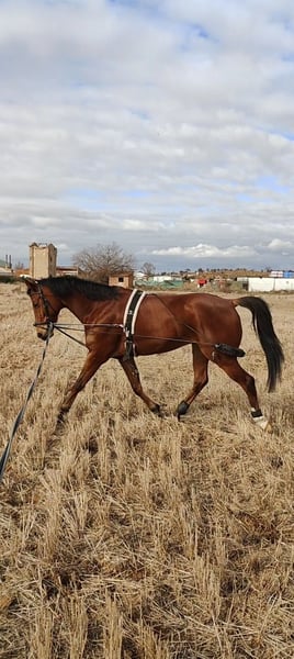 SE VENDE ⚡ Joven, activo y con chispa ⚡ Hay caballos que no están hechos para unas Olimpiadas…pero están hechos para disfrutar cada día. 🤩 Y Confitero ,es exactamente eso: un potro joven, con sangre, elasticidad y buena actitud, pensado para un jinete aficionado que monta, disfruta del trabajo en pista y también del campo. Un cruzado de línea Anglo-Árabe con motor, calidad de movimientos y carácter deportivo, pero con un manejo sencillo y una cabeza noble. No es un potro de alta competición internacional, pero sí honesto, divertido, funcional y con proyección real para un aficionado que quiera crecer, aprender y disfrutar del camino. 🤎🐴 ⸻ 🦄 Datos principales: • Nombre: Confitero • Edad: 5 años (2020) • Raza: Cruzado (línea Anglo-Árabe) • Sexo: Castrado • Capa: Castaño • Alzada: 160 / 161 cm • Documentación: Pasaporte 🏋️ Entrenamiento y nivel: • Disciplina: Doma Clásica • Nivel: Nivel 2 • Ejercicios: cesiones, espaldas adentro, trabajo base consolidado. • Competición: sin experiencia • Forma de trabajo: ágil, elástico, enérgico, con buen motor • Uso: trabajo en pista + salidas al campo 💛 Carácter y manejo: • Montado: enérgico, activo, con ganas de trabajar • En el suelo: manso, fácil manejo • Jinete ideal: aficionado con algo de experiencia • No apto para iniciación • Perfil perfecto para quien quiere: montar, disfrutar, aprender, salir al campo y evolucionar con su caballo 🩺 Salud: • Estado general: sano • Placas radiográficas: no realizadas • Piroplasmosis: no testado. 📍 Ubicación: Madrid 📩Interesados: escribir al 694475937 Un caballo para disfrutarlo, no para soñarlo. Para un jinete real, un proyecto real y un disfrute diario real. Pista, campo, trabajo, aprendizaje y conexión. 🤎🐎