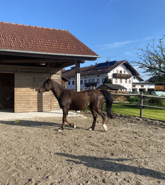 Amir es un hermoso y sensible caballo de carácter muy sociable, lleno de encanto. Ya ha sido montado tanto en el paddock como en el campo. Durante las excursiones, nos acompaña como caballo de compañía. Lamentablemente, Amir presenta una ligera problemática en la inserción del tendón digital, por lo que ya no es apto para una monta intensiva. Sin embargo, disfruta de paseos y trabajo en tierra. Es muy curioso y seguramente también le gustaría recibir atención en otras formas. Este caballo de color alazán es muy cariñoso, inteligente y se alegra de contar con personas claras y afectuosas que disfruten de una comunicación delicada. Actualmente, está en un pequeño paddock privado en la región de Chiemgau, con conexión familiar, sin herraduras y bien cuidado en todos los aspectos. ¡Solo en manos de personas responsables y que cuiden bien a su caballo! Raza: Árabe Nombre: Amir ibn Ducor ox Fecha de nacimiento: 06.07.2017 Color: Alazán Altura: aproximadamente 155 cm