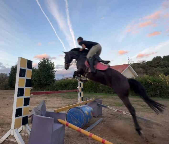 En venta yegua de 10 años, 1,59 a la cruz, con mucha aptitud y potencial en el salto, se vende por falta del tiempo que necesita acorde con su temperamento y falta de trabajo