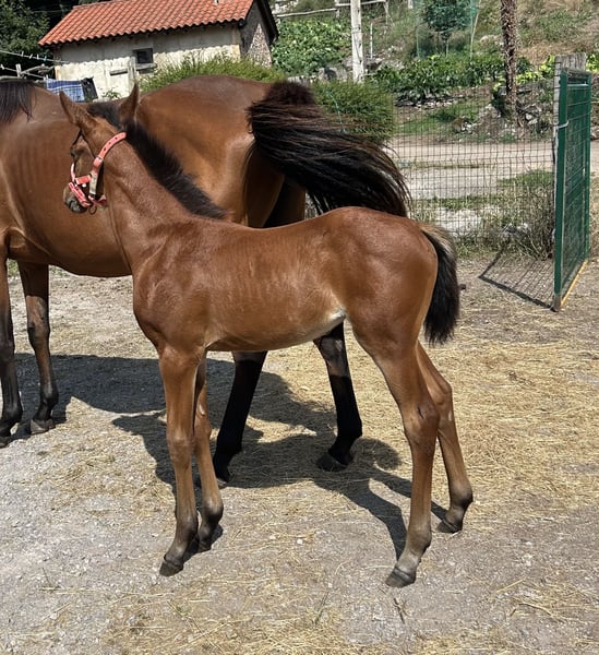 Potra Anglo-árabe 50% origenes super exclusivos. Deep Impact (JPN) Saxon Warrior (JPN) Montjeu (IRE) Galileo (IRE) 2x Sadlers Wells (USA) Green Tune (USA) Por linea materna. Por linea paterna: Chip Chase Sadaqa (AUS) Zerox TE (AUS) Aloha Zar (AUS) Talquah Talik (AUS) Tidjani (FR) Djou Said (FR) Bard Bedur (FR)