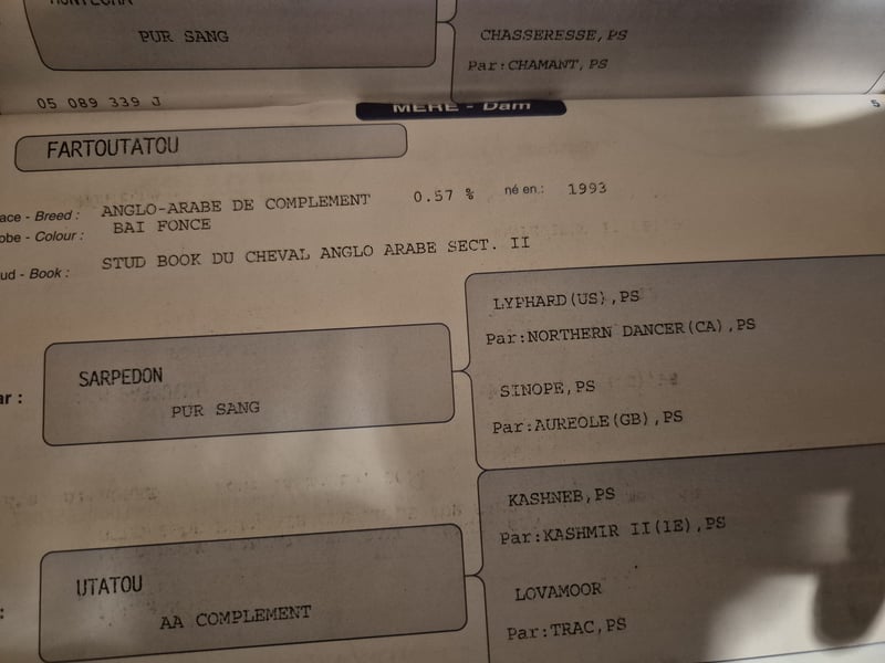 For sale is a 20-year-old brown mare. She has a height of approximately just over 1.60m. A few weeks ago, we started retraining her after about a year off from riding (due to the owner's illness). Super nice horse, very light to the aids, can be ridden with "a little finger," with a healthy go, not suitable for beginners. Currently, she has some balance issues in the canter due to not having fully rebuilt her musculature yet. However, with some training, this will surely not be a problem for long. Very people-oriented, she enjoys attention and loves to be cuddled. She stands very calmly at the grooming area and loves to be pampered. We wish for her a great home as a companion or also as a riding horse in leisure activities with a more experienced rider. According to the previous owner, the mare has already had 5 or 6 foals, pedigree see photos. We vaccinated her once last month (influenza and tetanus). Her hooves have been freshly done, she was last dewormed in May, and her teeth are in good condition, having been done in January. She is currently still on pasture 24/7 and is also familiar with being in a stable at night. We are not aware of any illnesses, and she has not shown any unusual behavior with us so far. Price is negotiable, perhaps the right person for this wonderful mare will be found here. The mare is sold privately, without warranty and excluding any liability for defects.