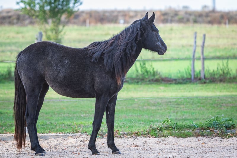 Nachwuchsstute – Rappschimmel, geb. 2023** Zum Verkauf steht eine vielversprechende Rappschimmel-Stute, geboren im Jahr 2023. Diese junge Pferdefreundin besticht durch ihre elegante Erscheinung und ihre freundliche, aufgeschlossene Art. Sie ist bestens für die Freizeitgestaltung geeignet und zeigt bereits erste positive Grundgangarten. Die Stute ist gut sozialisiert, artig im Umgang und wurde bereits an die Hand gewöhnt. Aufgrund ihres altersgerechten Entwicklungsstands bietet sie ein ideales Fundament für eine spätere sportliche Karriere oder eine liebevolle Freizeitnutzung. Sie ist gesund, regelmäßig entwurmt und befindet sich in einem gepflegten Allgemeinzustand. Für weitere Informationen oder einen Besichtigungstermin stehe ich gerne zur Verfügung.