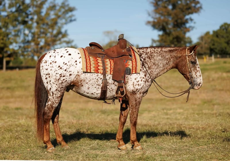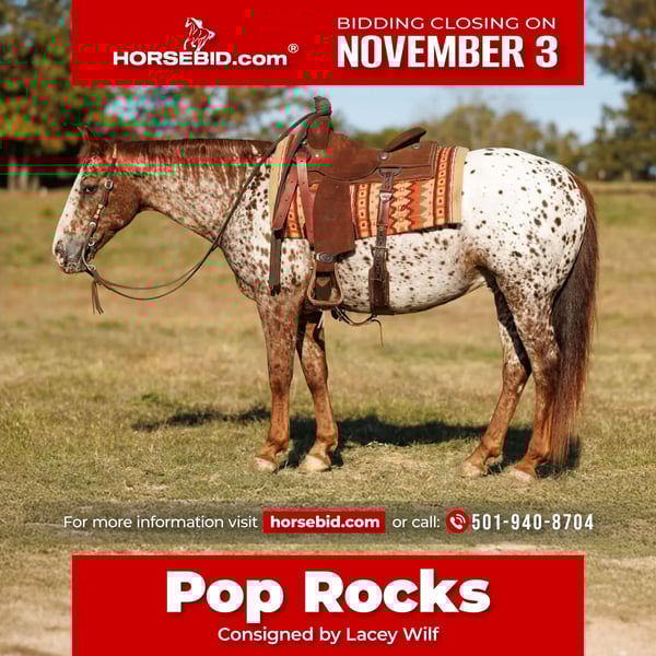 ⚜️𝐓𝐇𝐄 𝐅𝐀𝐋𝐋 𝐇𝐄𝐑𝐈𝐓𝐀𝐆𝐄 𝐂𝐋𝐀𝐒𝐒𝐈𝐂⚜️ Happening now thru MONDAY | NOVEMBER 3rd - Available EXCLUSIVELY on HorseBid's website! For more details and to register visit: www.Horsebid.com CONSIGNOR CONTACT: Lacey Wilf 501-940-8704 LOCATION: Quitman AR BREED: Appaloosa REGISTERED: No REGISTERED NAME: Pop Rocks COLOR: Leopard HEIGHT: 14.2 AGE: 10 GENDER: Gelding Pop Rocks is the kind that makes you grin the minute you swing a leg over him — a 10 year old leopard Appaloosa gelding standing 14.2 hands of pure character, cow sense, and chrome. With that loud, spotted coat and a handle that’ll make you look good doing anything, he’s the perfect mix of flash and function. He’s seen a lot of country and done just about every job there is to do. Pop Rocks has spent plenty of time on the ranch, pushing cattle through brush, doctoring, and getting gates. He’s just as handy at the cow sale — cool under pressure, cowy and quick-footed when needed, and all business when there’s work to be done. His handle is something to brag about: he’ll spin both directions with precision, stop deep and collected, and ride completely off of your feet. Light, broke, and tuned-in, Pop Rocks makes every ride feel effortless. Take him down the trail and you’ll see why he’s a favorite — crosses anything you point him at, from creeks to bridges and thick timber. He never bats an eye at traffic or commotion. He’s surefooted, confident, and always game for the next adventure, whether it’s a long day checking cattle or a laid-back ride with friends. On the ground, Pop Rocks is all class — stands quietly to saddle, bathe, groom, and haul. He handles everything with the same calm, steady demeanor he carries under saddle. With his color, brains, and bridle-horse handle, he’s one of those rare geldings that’s as fun to show off as he is to ride — a true one-of-a-kind with plenty of “wow” factor and a whole lot of try.