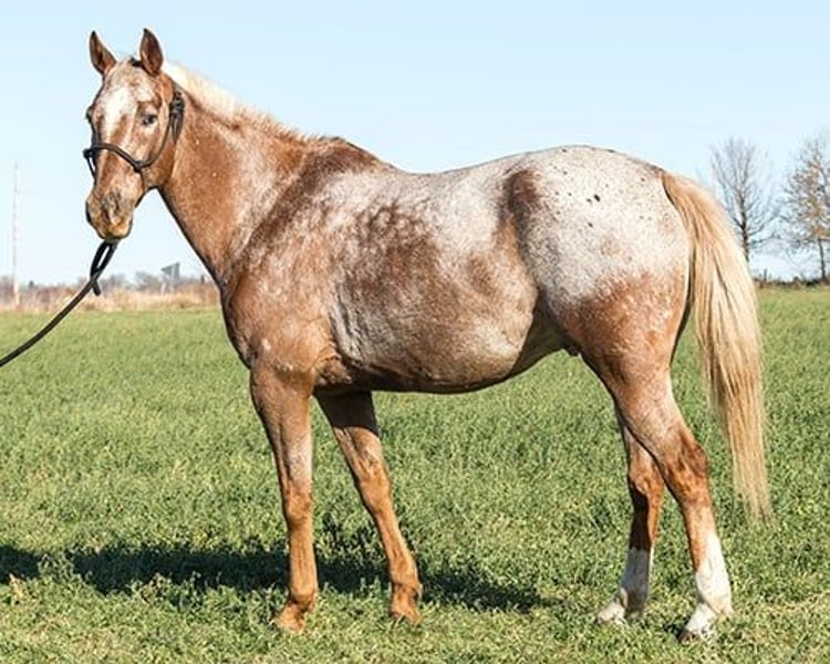 "AVAILABLE ON ONLINE HORSE AUCTION AT www DOT MagicHorseAuction DOT com BIDDING OPEN NOW thru TUESDAY | November 25TH! - BUY IT NOW AVAILABLE! *Final price will be determined on auction site* CONSIGNOR CONTACT INFO: Shauna Cooper 309-229-4249 LOCATION: Princeville, IL * Okies Smokin Lena * Okies Smokin Lena aka Rusty is a 2015 Registered Appaloosa Gelding. He is a spotted sorrel that stands 16.1 hh tall. Rusty his a jack of all trades. He has had training in multiple disciplines. He has 4 months of barrel racing training as well as 6 months of dressage training. He has been extensively rode on trails. He is traffic safe and will ride all day for you. He also has ponied other horses on the trails with no problems. He will ride English or western. He has experience carrying a flag. Rusty has more whoa than go but is eager and ready to please. Feel free to reach out at any time for questions or to schedule a visit with Rusty!