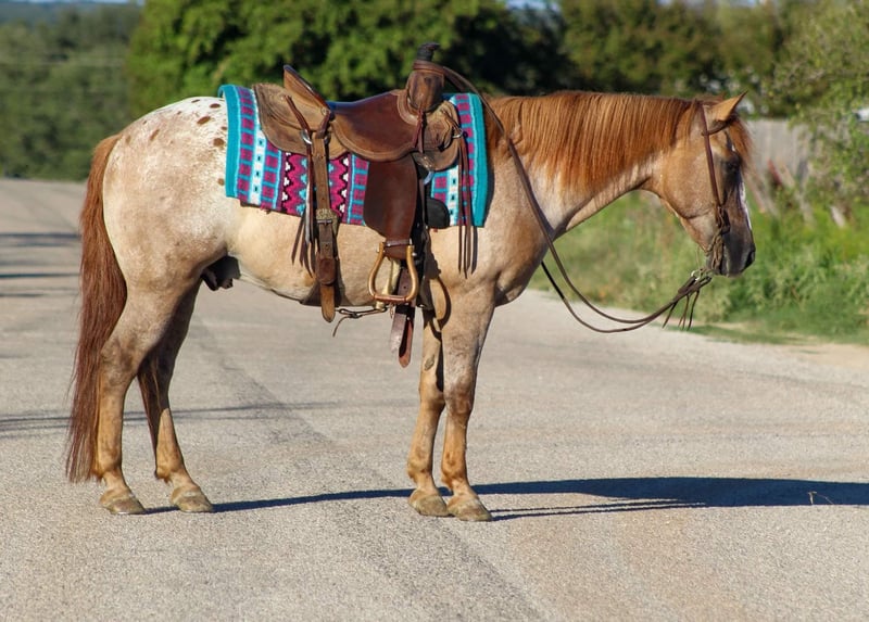 ONLINE AUCTION Place your bids at www.PlatinumEquineAuction.com Starting Bid $3500 Auction ends September 29th, 2024 Need a new saddle? Check out White Rock Saddles on our website or Facebook! Juicebox is an amazing once in a lifetime pony !! And gorgeous to boot! He is the prime age of 13 years old and standing 13.2 hds tall . He is a flashy red dun appaloosa gelding . If you looked up the definition of a true all around pony his name would pop up every time. There isn’t anything he hasn’t seen or done . Juicebox rides english and western , has done ranch work , roped the breakaway dummy on , runs the barrels and poles , has jumped small cross rail jumps , and goes down the trail like a seasoned veteran every time . He is one that the WHOLE family can enjoy and be absolutely safe on . He’s big enough for even the adults to ride and have fun on. Juicebox has had a TON of training which makes him the fancy riding pony he is . Absolutely nothing bothers this guy at all . Take him out to check the cattle and fences on . He has been rode on all kinds of trails including right down the busy bricks of Exchange Ave at the world renowned Fort Worth Stockyards with traffic , crowds of people , horse carriages, longhorns , loud music and plenty of other distractions. He’s always a town favorite getting all the attention because he’s absolutely perfect ! Juicebox has seen many nights of over night camping trips in the mountains, he’s been down miles and miles of trails at the National Parks from rough steep terrain to the flat grasslands he handles it all with ease all while keeping his rider safe . He will ride right into the river every time with zero hesitation, he will cross bridges and logs. In the arena he’s just as perfect he neck reins the very best , he breaks at the poll, he will walk, trot and lope beautiful circles all day long . He’s absolutely a kids dream pony to take to the 4H shows or even do the drill team on or go to the jr rodeos, he packs a flag with no issues at all. Ones like Juicebox are hard to come by and you will drive the wheels off your truck searching for one like him, he’s that once in a lifetime unicorn that you don’t want to miss . He is perfect for any level rider including the brand new beginner horse lover. His size is absolutely perfect for the smaller kids and does not intimidate them. He stands like a perfect gentleman for bathes , easy to tack up and bridle. He stands to be clipped and groomed, loads in and out of the trailer. Juicebox is the sweetest boy that’s always in your pocket loving all the attention and cookies. Contact us to come try him, or we can set up a FaceTime also. If you need help with transport don’t hesitate to ask we have a list of reputable haulers that can get him safely to your doorstep world wide. Located in Stephenville, TX. Contact M $ Performance Horses Michelle 661-817-9120. ONLINE AUCTION Place your bids at www.PlatinumEquineAuction.com Starting Bid $3500 Auction ends September 29th, 2024 Need a new saddle? Check out White Rock Saddles on our website or Facebook!