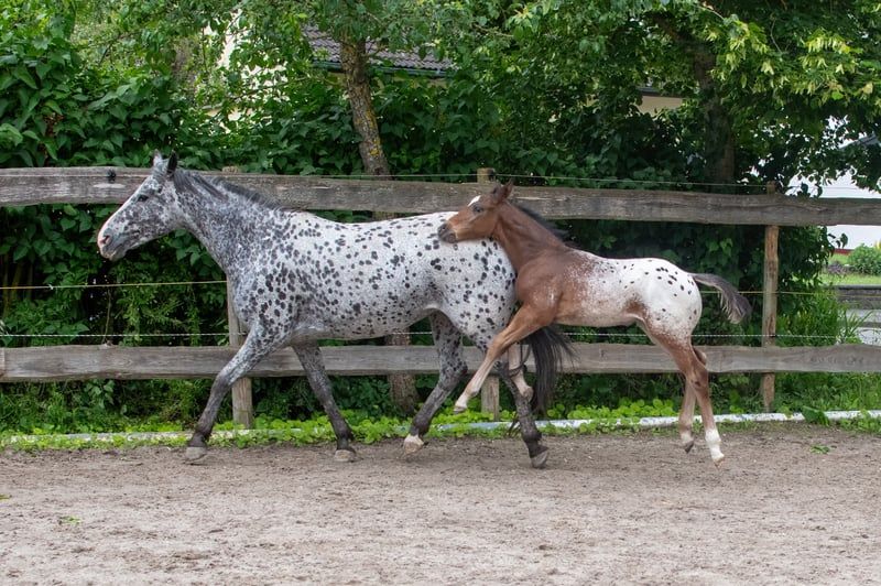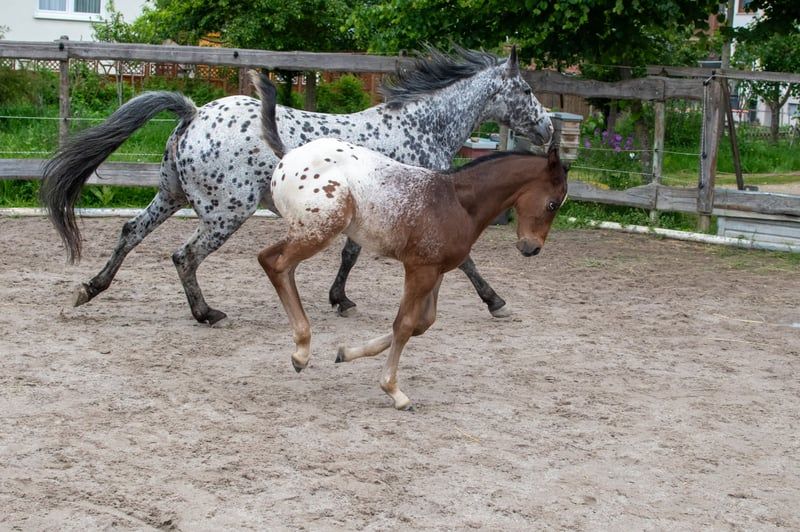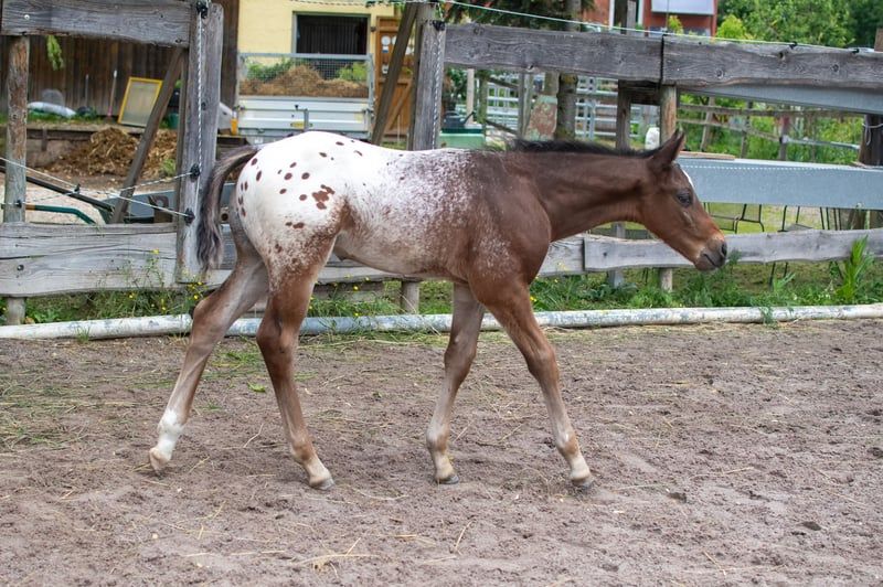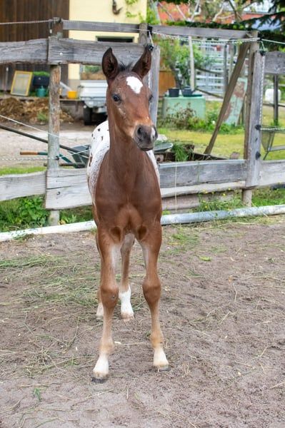 Chief, affectionately known as "Chiefi," is truly special due to his appearance and especially his affinity for people: he allows himself to be haltered like an old pro. Even fly protection over the ears with annoying Velcro straps doesn't faze him. We regularly practice picking up his hooves and loading him into the trailer with his mom: it’s impressive how he "participates" and improves day by day. Chief is a friendly, motivated, people-oriented, and trainable young man. This promising eye-catcher is ideal for enthusiasts and ambitious riders looking for a reliable and talented partner for Western riding or leisure activities. His pedigree and potential make him a valuable companion for the future. If interested, simply call (+49 174 18 93 848) or arrange a short-term appointment.