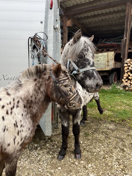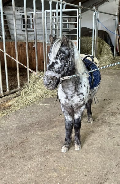 Absolutely no urgent sale! Only available to the perfect new home. Name: Silvester Breed: Appaloosa Gender: Gelding Date of Birth: June 6, 2022 Height: approximately 110 cm (about 11.0 hh) Color: Leopard spotted Silvester is a young, lively Shetland pony gelding with a wonderful temperament and great potential for show, leisure riding, or eventing. He is already accustomed to the bit and rides calmly on the bridle. In handling, Silvester is friendly, attentive, and very eager to learn. Despite his young age, he already masters some circus tricks such as the Spanish walk and canter pirouettes — with enthusiasm and expression! He currently lives in a small, harmonious herd of geldings and is social, balanced, and easy-going there. Importantly, Silvester is very bonded with his best friend Simba (Appaloosa Mini Shetland stallion, 87 cm, born 2008). The two are a well-coordinated team and should be rehomed together, in a place where they can continue to be lovingly supported. ❤️ Silvester is looking for a home where he can continue to learn, be encouraged, and remain as friendly and cheerful as he is now.