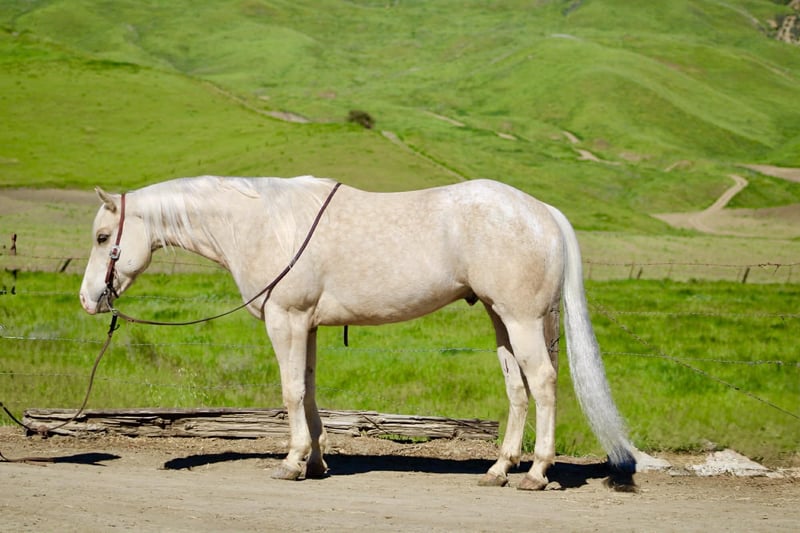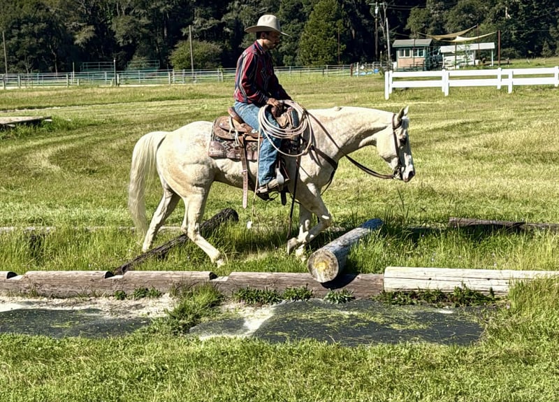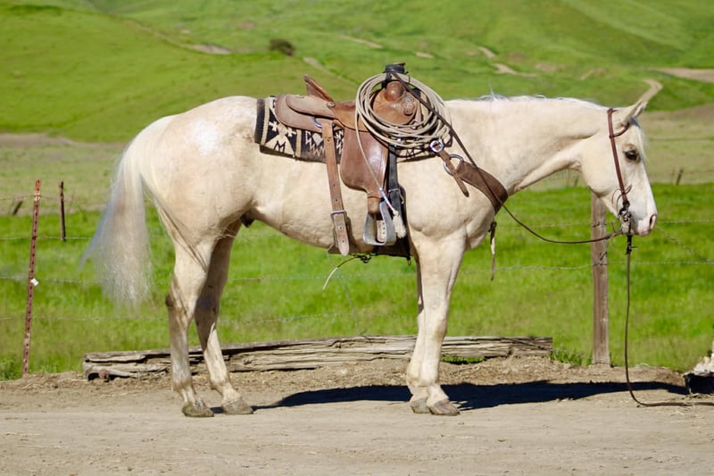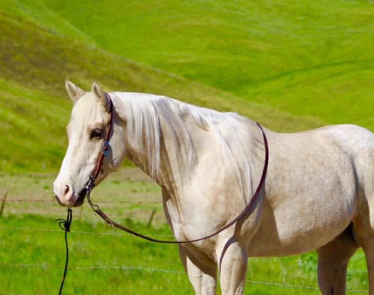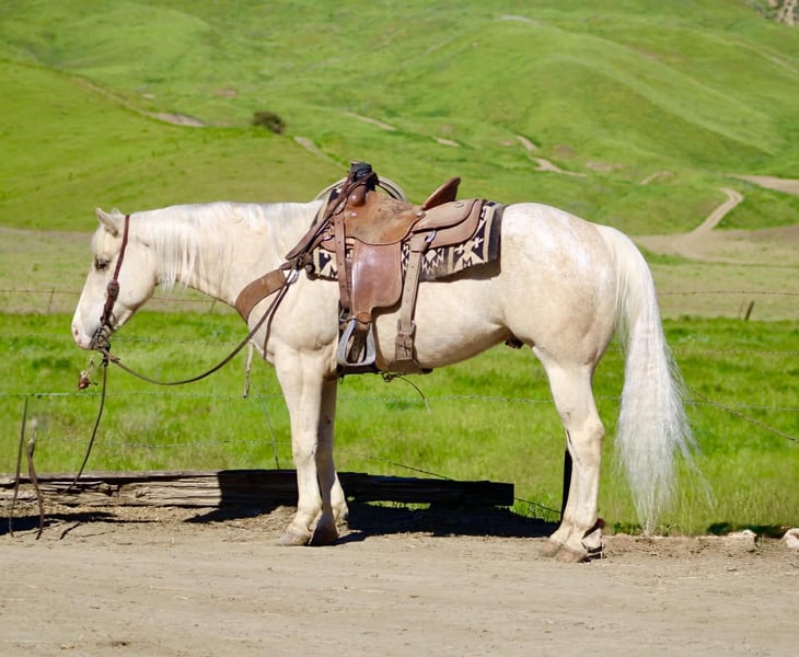 "AVAILABLE ON ONLINE HORSE AUCTION AT www DOT PlatinumEquineAuction DOT com BIDDING OPEN NOW thru SUNDAY | MARCH 29TH! *Final price will be determined on auction site* CONSIGNOR CONTACT INFO: Longhorn Ranch 831-537-1915 LOCATION: Paicines, CA BOUGIE 7-Year-Old Rare Palomino Snowflake Appaloosa Gelding • 15 Hands Some horses try hard to get noticed. Bougie doesn’t have to. With his rare palomino snowflake Appaloosa coat and sharp presence, he’s the kind that naturally catches an eye from across the pen. But once you saddle him up, it becomes clear Bougie is a whole lot more than just good looks. He is safe for all levels. Bougie is gentle to be around and simple to handle. He stands quiet to saddle, rides off easy, and carries himself with the kind of steady attitude that makes a horse enjoyable to own. Whether he’s ridden every day or given a little time off, he comes out the same honest horse each time. Out on the trail, Bougie has seen plenty of country. He’s been ridden through state parks and rough terrain where wildlife, water crossings, bridges, and uneven ground are just part of the ride. He is use to pedestrians,bikes and wildlife.He takes it all in stride and stays level-headed wherever you point him. He’s also comfortable around trail obstacles such as bridges, tarps, flags, and other obstacles, and rides quietly through town traffic with cars, trucks, and everyday commotion without losing his composure. In the arena, Bougie carries himself with a smooth, balanced way of going. He moves correctly through his transitions, has a nice stop, backs easily with light cues, and stays soft and responsive. Around the ranch, Bougie has been used to gather cattle, brand, and sort, working quiet and cooperative while he does his job. He has also been tracking the lead steer and is showing the kind of natural feel that could make him a very nice rope horse. Bougie is the kind of gelding you can take down the trail, go do a day’s work on the ranch, or enjoy riding in the arena. With his unique color, good mind, and steady way of going, he’s the kind of horse people enjoy owning. Good horses come in all colors… but it sure doesn’t hurt when one shows up looking like Bougie. Paicines, California Longhorn Ranch – Dina 831-537-1915 Nationwide shipping available