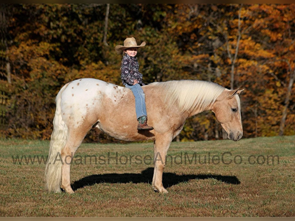 This horse sells in Cannon Falls, MN on February 1st and is consigned to www.NorthStarHorseSale.com you can bid online, bid in person and come preview each horse and ride them yourself before bidding. Shipping is available anywhere in the USA. $5000 starting bid, all horses sell sound. Trash those X-Boxes, Playstations or other video game consoles, kids don’t need to be glued to a TV… Kids need a horse like Pecos Bill!!! Take a look at the coolest little appaloosa horse that you will see! He has it all going for him from that beautiful palomino color, to that pretty LONG mane and tail and don’t forget about that sweet little lope! Pecos Bill is a 5 year old gelding that is standing around 13.3hh. All fall and winter long Pecos Bill has been one of our 6 year old daughters horse and she has trail ridden him, took him camping, had around the ranch and pushed cows with him. Pecos Bill has been the perfect horse for her! Pecos Bill is plenty stout enough to carry an adult as Mom has taken Pecos Bill out on the ranch, where she has pasture roped and doctored sick ones, herded cattle and the kids have ridden down the trails almost daily! Pecos Bill will cross creeks, ditches, logs and navigate rough rocky areas. He has a nice walk, smooth jog, a good slow lope, he reins around and backs as well! He has been exposed to all kinds of wildlife and will go anywhere that he is asked too. He has been ridden many miles in the mountains of Eastern Kentucky and encountered every obstacle possible on the trail. He will go up or down even the steepest slopes, across deep creeks, over downed trees, and over all types of rough terrain while still being sure footed. Pecos Bill will be a family favorite for years to come! Call 606-308-2461 for more info.