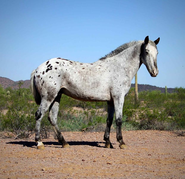 ONLINE AUCTION Place your bids at www.PlatinumEquineAuction.com Starting Bid $3500 Auction ends October 19th, 2025 Need a new saddle? Check out White Rock Saddles on our website or Facebook Popeye is ready to be your new best friend! This 8 year old Appaloosa gelding is friendly, kind and is always the first one to greet you at the gate. Popeye stands 14.2 with good bone and shape to him. While he lacks in a tail department, he makes up for it with his big heart and willingness to please! He is gentle and easy to get along with, without being a lazy boy. Popeye has a ground covering walk out on the trails and loves to go out for adventures. He’s not spooky and will cross anything you ask him to. He is comfortable around dogs, traffic, tractors, and loud noises and gets along well with other horses. He has been hauled around a few times to events for exposure and handles new environments with ease. Popeye has a nice handle in the arena and rides one handed or two, and has a good stop and turn around and back up. We have played around with him on the barrels a couple times now and he seems to really enjoy that as well! He would make a great horse for playdays or even be a great rope horse prospect. Popeye has wonderful ground manners, he stands tied, bathes, loads and hauls. He is well behaved for the farrier and is currently shod on all four. He is sound with no maintenance. Popeye wants to be someone’s best buddy, make him your number one and I’m sure he’ll move mountains for you! Located in Marana Arizona, and we are happy to help arrange shipping anywhere! Popeye will come with a current coggins and health certificate. Please feel free to call/text Claire Siebols anytime with questions about Popeye at 435-899-0508. ONLINE AUCTION Place your bids at www.PlatinumEquineAuction.com Starting Bid $3500 Auction ends October 19th, 2025 Need a new saddle? Check out White Rock Saddles on our website or Facebook