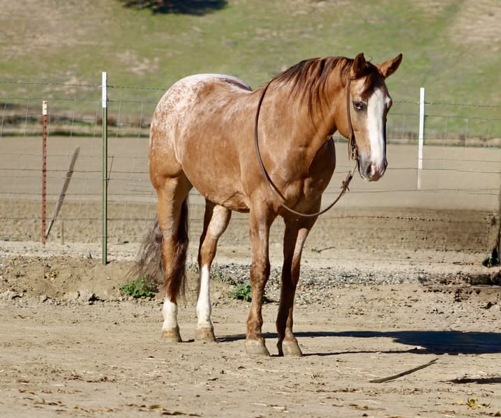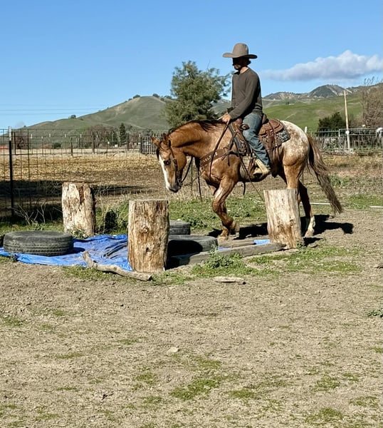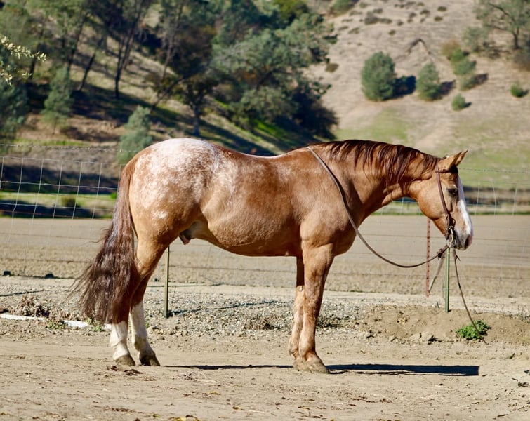 ONLINE AUCTION Place your bids at www.PlatinumEquineAuction.com Starting Bid $3500 Auction ends January 4th, 2025 Need a new saddle? Check out White Rock Saddles on our website or Facebook APPLEWOOD — Don’t scroll past this one. 9 Years Old • 14.3 Hands • Dun Blanket Appaloosa Gelding You could line up a hundred geldings and still spot this one first. Applewood is a standout — a striking dun blanket Appaloosa with tiger stripes on his legs and a look that flat gets attention. What really makes “Woody” special is how he feels under saddle. He’s consistent, pleasant, and makes every ride feel simple. Not hot, not heavy, and never complicated — just a steady, responsive gelding that’s easy to get along with from the first ride, and stays that way. He’s safe, dependable, and well-suited for riders of many levels. And he’s a cool ranch horse to the core. Woody has branded and worked cattle, and he loves it — the kind that stays handy, pays attention, and acts like he’s proud of his job. He’s been started on the heeling and enjoys cow work, with a willing attitude that makes him fun to ride and easy to keep improving. Woody has been hauled and exposed to just about everything: tarps, flags, obstacles, bridges, tires, water, brush, and traffic — and he takes it all in stride with a calm, steady mind. If you love to ride outside, Woody shines. He’s confident and sure-footed on the trail, navigating water crossings, wildlife, tight paths, logs, brush, and rocky ground with focus and care. He pays attention to where he puts his feet and stays composed when the terrain gets real — not just pretty. In the arena, Applewood is smooth and balanced with a comfortable way of going. He picks up both leads, moves out quietly, stays soft in the face and body, has a nice stop, backs willingly, and turns easily without getting stiff or overdone. Honest, uncomplicated, and enjoyable. On the ground, Woody is just as reliable. He hauls well, stands tied, bathes, clips, and is good for the farrier. Stalled or turned out, alone or in a group, he’s the same solid horse every time — no surprises. Applewood is one of a kind — uniquely marked, easy to ride, and the kind of horse you’ll be proud to own. Whether you’re building confidence or you’ve been doing this a long time, he’s the kind of partner you can feel secure on. Come meet him or call to learn more. Located in Paicines, CA (Longhorn Ranch) 📞 Dina: 831-537-1915 Nationwide shipping available.+ ONLINE AUCTION Place your bids at www.PlatinumEquineAuction.com Starting Bid $3500 Auction ends January 4th, 2025 Need a new saddle? Check out White Rock Saddles on our website or Facebook