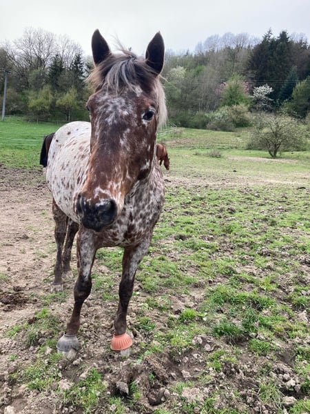 Ich suche für meine Stute Joy ein absolutes Traumzuhause Eckdaten: 10 Jahre alt, am 20.05.2015 geboren Appalossa x Quater Horse Mix mit Appalossa Papieren Ca. 156 cm groß Vor einigen Jahren Hufrollenbefund am linken Vorderhuf, welcher mit einem Spezialbeschlag gut behandelt ist. Sie ist freizeitmäßig, gebisslos geritten und ausgebildet, geht zuverlässig alleine und auch in der Gruppe ins Gelände und ist allgemein sehr motiviert und temperamentvoll. Sie braucht eine Person, die ihr Sicherheit gibt und selbstbewusst im Umgang mit Pferden ist. Allgemein kennt sie schon sehr viel aber wird bei unbekannten Situationen auch mal unsicher, bleibt dabei aber immer händelbar und kontrolliert. Sie ist sehr gut vom Boden aus gearbeitet, Freiarbeit, Lektionen wie Kompliment, liegen, „Schaukelpferd“ etc. ist kein Fremdwort für sie. Zudem wurde viel Handarbeit mit ihr gemacht, Schulter herein, Kruppe herein und Seitengänge jeder Art sind für sie kein Problem, auch nicht vom Sattel aus. Aufgrund ihres Hufrollenbefundes, wird sie nur noch im Gelände geritten, da sie vermehrt auf harten Böden geritten werden soll. Bei Hallen oder Platzböden kommt es ganz auf den Boden drauf an. Je nachdem fällt es ihr einfacher oder schwerer. Sie wird abgegeben, da ich die nächsten Jahre noch zum studieren weg bin und ihr aufgrund meiner zukünftigen Arbeit leider nicht die nötige Aufmerksamkeit und Fürsorge geben kann. Ich wünsch mir für sie jemanden, der sich vielseitig mit ihr beschäftigt, sie fördert und schöne Ausritte und abwechslungsreiches Bodenarbeitstraining mit ihr genießen möchte. Zudem steht sie im Winter im Offenstall und im Sommer 24/7 auf der Koppel. Keine Allergien, kein Spezialfutter oder ähnliches. Ich wünsche mir, dass sie wieder in einen Offenstall, Aktivstall oder auf die Koppel kommt. Sie wird nicht an Boxenhaltung oder Paddock abgegeben. In der Herde hat sie eher einen mittleren Stand und steht aktuell in einer gemischten Herde. Generell ist sie anderen Pferden gegenüber sozial und aufgeschlossen. Ich kenne Joy seit Geburt an und wünsche mir für sie einen Endplatz zu finden. Sie wurde selbst von mir ausgebildet und hat bereits mehrere Wanderritte, Reit- und Bodenarbeitskurse sowie Trails besucht. Sie ist auch in fremder Umgebung aufmerksam und zuverlässig. Keine Händler oder Reitvereinanfragen bitte, nur Privatpersonen. Gerne mit Fragen an mich wenden, generell kann mehr Auskunft bei einem persönlichen und telefonischen Gepräch gegeben werden. Preisvorstellung liegt bei 4800€VB Standort Nähe 63639 Flörsbachtal