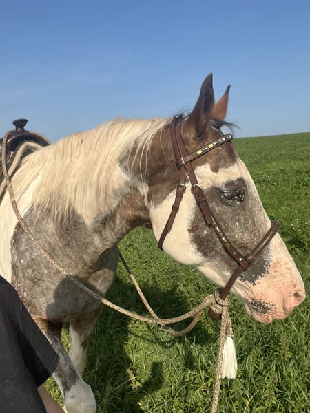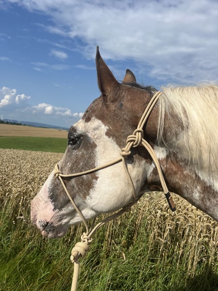 Zum Verkauf steht eine Appaloosa-Stute mit wunderschönem, auffälligem Fellmuster und viel Ausdruck. Sie wurde vorletztes Jahr im Juni im Alter von neun Jahren angeritten. Anschließend war sie drei Monate in professionellem Vollberitt und wurde danach von mir regelmäßig weiter gearbeitet und durch Reitstunden gefördert. Die Stute wurde western geritten und ist gebisslos mit Bosal ausgebildet, was ihr sehr gut liegt und ihr angenehmes, feines Reiten ermöglicht. Sie ist kein Anfängerpferd. Als sensible Stute braucht sie etwas Zeit, um Vertrauen zu ihrem Menschen aufzubauen. Gibt man ihr diese Zeit, zeigt sie sich sehr gelehrig, motiviert und arbeitsfreudig. Sie lernt schnell und hat große Freude daran, neue Aufgaben zu bekommen. Abwechslung und gemeinsame Arbeit wie z.B. Bodenarbeit machen ihr sichtbar Spaß, und mit zunehmender Sicherheit sind klare Fortschritte erkennbar. Im Gelände war sie bereits mehrfach mit mir unterwegs – sowohl in der Gruppe als auch alleine. Das hat bisher sehr gut funktioniert. In manchen Situationen kann sie etwas schreckhaft reagieren, was man einkalkulieren sollte. Diese Reaktionen sind jedoch gut händelbar und kein unkontrolliertes Verhalten, sondern eher Ausdruck ihrer Sensibilität. Eine tolle Stute für einen erfahrenen, ruhigen Reiter, der Freude daran hat, Vertrauen aufzubauen und gemeinsam mit seinem Pferd zu wachsen – kein fertiges Pferd, sondern ein Partner mit Potenzial. Bei mir wurde sie regelmäßig entwurmt und geimpft. Weitere Fragen beantworte ich gerne.