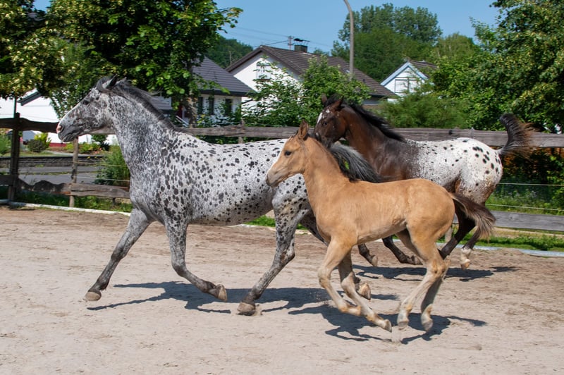 Kates a Star, surnommée Kati, est une descendante de "Toby 1", provenant donc de la célèbre lignée Toby. Elle a été montée pendant la période où elle n'était pas pleine et n'avait pas de poulain à ses côtés. Kate est une excellente mère et est à nouveau pleine de Buns Final Chief. Son dernier poulain (voir les photos) est un Buckskin ; avant cela, elle a eu un Schabrackentiger et encore avant, un Tigerschecke. Elle transmet donc - selon le cheval de reproduction - des couleurs variées. Elle a des pieds très sains, est ferrée et chargée sans problème, et est très agréable à manipuler. D'après mon expérience en travail au sol avec elle, je peux dire qu'elle est intelligente, apprend rapidement et est coopérative. Je dois me séparer d'elle pour des raisons d'âge et de santé et je ne la confierai qu'à un bon endroit. Kate n'a jamais eu de problèmes depuis qu'elle est avec moi ; cela s'applique également à son poulinage et à ses poulains (je peux fournir un contact avec son vétérinaire).