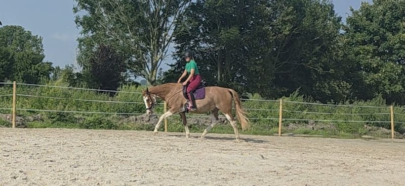 Hallo. Im Auftrag steht diese 15 jährige, 1.68 große Fuchsstute zum verkauf. Sie ist solide ausgebildet, läuft auf Trense und Kandare, lässt sich auch von Kindern "bedienen". Reiterfahrung und Sicherheit in den 3 Grundgangarten sollte dennoch vorhanden sein. Die Stute möchte schon geritten werden, auf pillepalle hat sie wenig Lust. Nächstes Jahr sollte sie eigendlich noch auf Turnier vorgestellt werden, was sie mit Sicherheit mehr als super meistern würde, aber nun wurde sich eben für den Verkauf entschieden. Sie lässt sich in allen drei Gangarten super reiten, ist sehr sitzbequem und man kann auch so einen Abstecher mit ihr ins Gelände machen und mal auf dem Feld ein bisschen Spaß haben. Sie ist immer händelbar und Kopfklar. Nun zu Ihren "Baustellen": Sie benötigt vorne Beschlag, da sie eine Huffehlstellung hat, die sie aber nicht beeinträchtigt. Nur ist sie aufgrunddessen sehr empfindlich am Huf. Zudem ist sie gegen Milben und Staub allergisch, das wurde aber mit einem Antiallergikum namens "Desloratadin" sehr gut in den Griff bekommen! Vor einem Jahr hustete sie immer beim reiten, sodass es abgebrochen werden musste. Das Antiallergikum bekommt sie nun seit knapp einem halben Jahr und sie ist frei von husten. Auch wenn es mal ein paar Wochen ausgesetzt wurde. Dennoch sollte sie im Offenstall stehen oder in einer gut belüfteten Paddockbox mit Heulage! Trockenes und staubiges Heu darf sie auf KEINEN Fall! Zudem ist sie schlecht in einen Pferdeanhänger zu bekommen. Transporter kein Problem! Die derzeitigen Besitzer würden sie aber dennoch auf einen Hänger bekommen, da sie Verladetraining gemacht haben und mit ihrem Problem umzugehen wissen. Da wird auf jeden Fall geholfen, sollte aber bei dem Wunsch mit ihr auch mal wegzufahren, weiter trainiert und gefestigt werden! Die Stute wird mit ihrem Zubehör verkauft (Sattel, Sattelgurt, Trense, Kandare, Abschwitzdecke, Regendecke...) Probereiten natürlich möglich. Bei Interesse sehr gerne anschreiben oder wenn noch Fragen offen sind. KEINE Ratenzahlung! KEIN zur Verfügung stellen! KEINE Händler!