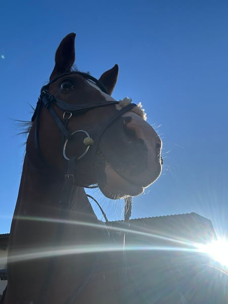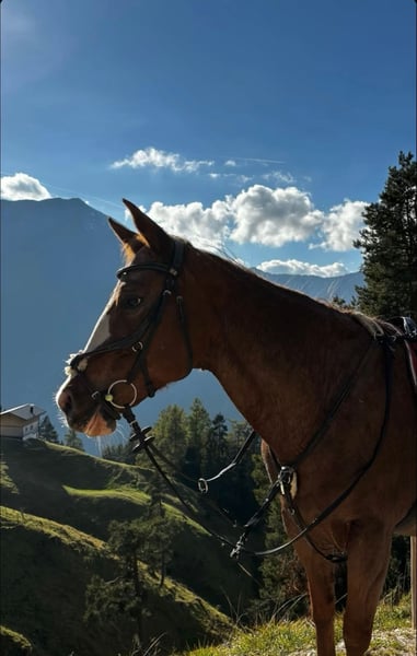 Ihre große Leidenschaft ist ganz klar das Gelände. Lange Ausritte genießt sie richtig – mit einem schönen Vorwärts, gutem „Go" und im Galopp hat sie noch ordentlich Schwung und Freude. Dabei bleibt sie aber immer kontrollierbar und klar im Kopf. Den Reitplatz kennt sie auch, aber wenn man sie fragen würde, wäre Ausreiten immer ihre erste Wahl. Beim Ausreiten ist sie am liebsten in Gesellschaft unterwegs geht aber auch alleine.
