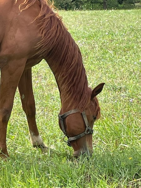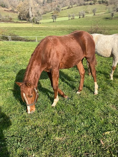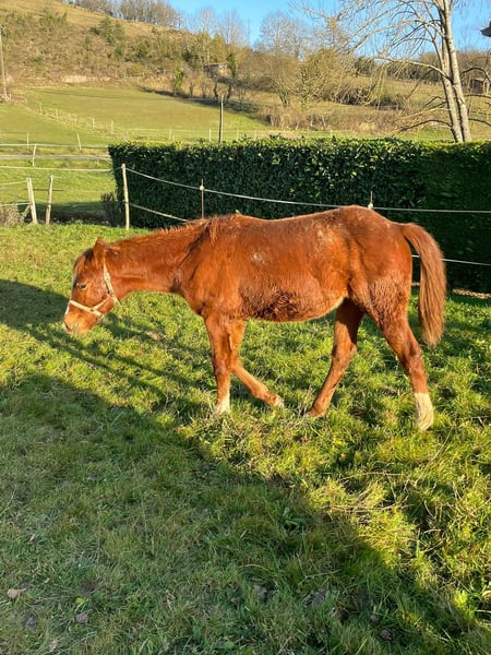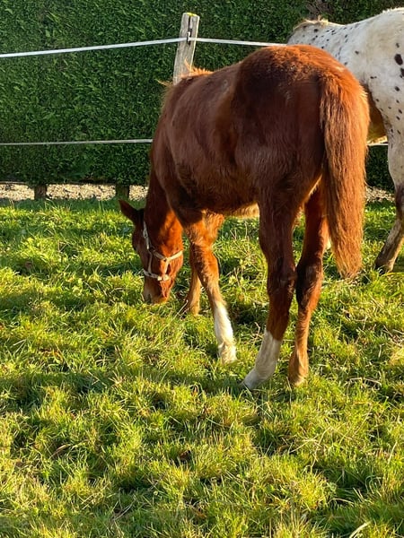 Découvrez Oakland Rock Star, une pouliche née le 19 avril 2024 qui a tout pour séduire les amoureux du cheval western et de l'appaloosa. Issue du croisement OC Appaloosa x Quarter Horse, Oakland Rock Star bénéficie d'une lignée solide avec pour père Kingly Blue Cougaran et pour mère Miss Conclusive Star. Le résultat est une pouliche au type Quarter Horse particulièrement marqué, une belle robe chestnut sobre et élégante, et un potentiel qui ne demande qu'à s'exprimer. Ce qui fait vraiment la différence chez cette petite merveille, c'est son mental. Douce, calme, avec un sang-froid remarquable pour son jeune âge, elle aborde chaque nouvelle situation avec une sérénité qui force l'admiration. Sa nature particulièrement affectueuse et sa recherche constante de contact humain en font une compagne aussi attachante qu'agréable à travailler au quotidien. Un caractère en or qui facilite grandement la mise en main et promet une relation privilégiée avec son futur propriétaire. Actuellement au niveau de la manipulation, Oakland Rock Star est une page blanche prête à être façonnée selon vos envies. Ses aptitudes naturelles la destinent pleinement au western, à la balade, au mountain trail et au ranch, autant de disciplines où son tempérament posé sera un atout considérable. À 4 000 €, cette pouliche représente une opportunité rare d'acquérir une base de qualité, saine de corps et d'esprit, pour construire un beau projet équestre. N'hésitez pas à nous contacter pour recevoir davantage d'informations, de photos et de vidéos, un appel vidéo peut également être organisé à votre convenance.