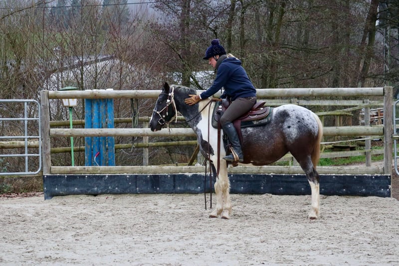 Appaloosa Pony Mare – Perfect for Western riding and leisure riding, on behalf of the breeder. We are offering a beautiful Appaloosa mare, born in 2022. She is a striking pinto with an exceptional personality! Incredibly well-behaved! Suitable for beginners! Height at withers: 14.5 hands. This young mare is ideal for recreational riding and offers great potential as a family horse. Her sweet nature makes her a pleasant companion in everyday life. She is healthy, well-socialized, and ready for new adventures. She follows everyone like a dog and is the favorite in the stable! Also loved by the other horses. If interested or for further questions, please feel free to contact me. Viewing and trial riding possible by appointment. Please contact me only by phone or WhatsApp: +49 171 5348287.