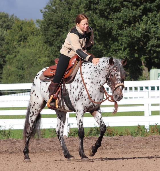 Met Pixie worden dromen werkelijkheid! Pixie zoekt een liefdevol en permanent thuis. Ze is een zeer loyale merrie met een vriendelijk en ontspannen karakter. Ze leert tot nu toe snel, is nieuwsgierig, cool en zelfverzekerd. In de kudde begrijpt ze zich altijd probleemloos met andere paarden. Pixie is een absoluut betoverende Appaloosa-merrie in een adembenemende kleur, die alleen in zorgvuldige handen geplaatst moet worden. Ze is van binnen een zonnestraal die veel vertrouwen schenkt, maar ook speels kan zijn en altijd klaar staat voor een avontuur. Ze heeft plezier in het werk, maar vindt het ook heerlijk om geknuffeld en verwend te worden. Ze geniet van de aandacht van haar verzorgers en is al gewend aan rustige buitenritten door bos en weiland. Vooral op zonnige dagen heeft ze plezier in water en spettert graag. Vanwege haar zachtaardige aard en haar heldere hoofd toont ze zich ondanks haar jonge leeftijd al zeer betrouwbaar en goed hanteerbaar. Pixie is perfect voor western- of recreatieruiters, menners en in principe ook voor herintreders in de paardensport. Met een stokmaat van ongeveer 1,53 m laat ze zich tot nu toe nieuwsgierig, ontspannen en onbevreesd zien tegenover alledaagse geluiden zoals tractoren of machines op de boerderij. Ze is een open jonge pony die altijd nieuwe dingen wil leren. Pixie loopt barefoot en komt tot nu toe goed zonder hoefijzers uit. Pixie is al gewend aan vrijheidsdressuur binnen het Natural Horsemanship. Door haar rustige, attente aard heeft ze snel de basisprincipes van vrijheidsdressuur onder de knie gekregen. Vrij volgen of gerichte handwissels naar haar mens toe zijn voor Pixie een eenvoudige taak. Wij willen voor Pixie een nieuw thuis vinden waar ze zich prettig voelt, verder uitgedaagd en gestimuleerd wordt en de liefde krijgt die ze verdient. Daarom wordt ze uitsluitend in goede handen geplaatst en persoonlijk met brandstofvergoeding naar haar nieuwe stal gebracht. Indien gewenst, kunnen wij een aankoopkeuring regelen. Bel ons gerust op 0162 434 8386 – geen e-mails. ⸻ Wij nemen graag de tijd voor een proefrit en kennismaking, zodat alles rustig en uitgebreid kan plaatsvinden. Om zeker te zijn dat alleen serieuze geïnteresseerden contact opnemen, vragen wij een kleine bijdrage van €50, die bij de aankoop van het paard uiteraard wordt verrekend. Hartelijk dank voor uw begrip!