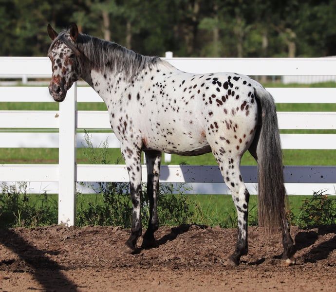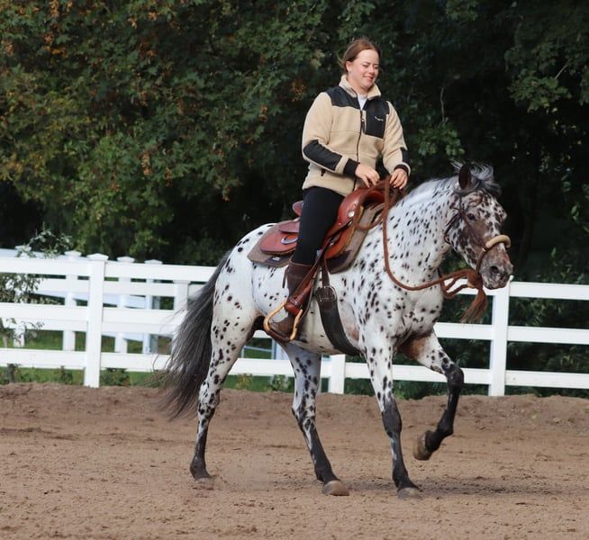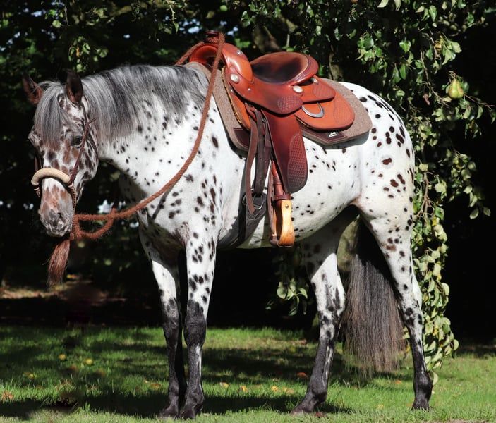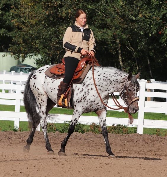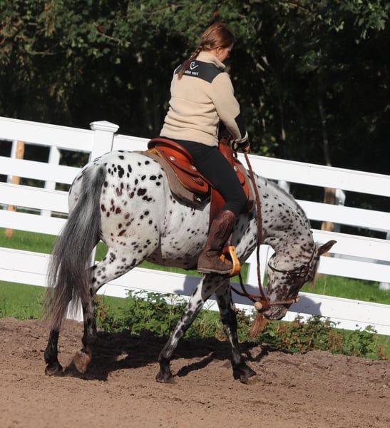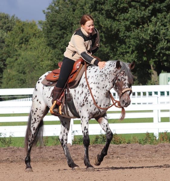 Met Pixie worden dromen werkelijkheid! Pixie zoekt een liefdevol thuis voor altijd. Ze is een zeer loyale merrie met een vriendelijke en ontspannen aard. Ze leert tot nu toe snel, is nieuwsgierig, rustig en zelfverzekerd. Met andere paarden in de kudde kan ze zich tot nu toe altijd zonder problemen aanpassen. Pixie is een absoluut betoverende Appaloosa-merrie in een adembenemende kleur, die alleen in zorgvuldige handen geplaatst moet worden. Ze is van nature een zonnestraal die veel vertrouwen geeft, maar ook speels kan zijn en altijd klaar staat voor een avontuur. Ze heeft plezier in het werk, maar houdt er ook van om verzorgd en verwend te worden. Ze geniet van de aandacht van haar begeleiders en is al gewend aan ontspannen buitenritten door bos en weiland. Vooral op zonnige dagen heeft ze plezier in water en spettert graag. Vanwege haar zachtaardige karakter en haar heldere hoofd toont ze zich ondanks haar jonge leeftijd al zeer betrouwbaar en goed hanteerbaar. Pixie is perfect geschikt voor western- of vrijheidsdressuur, recreatieruiters en in principe ook voor herintreders in de paardensport. Met een schofthoogte van ongeveer 1,53 m toont ze zich tot nu toe nieuwsgierig, ontspannen en onbevreesd tegenover alledaagse geluiden zoals tractoren of machines op de boerderij. Ze is een open jonge ruin die altijd nieuwe dingen wil leren. Pixie loopt barhuf en komt tot nu toe goed zonder hoefijzers uit. Pixie is al gewend aan vrijheidsdressuur binnen het kader van Natural Horsemanship. Door haar rustige, oplettende aard heeft ze snel de basisprincipes van vrijheidsdressuur onder de knie gekregen. Vrij volgen of gerichte handwisselingen naar haar mens toe zijn voor Pixie een eenvoudige taak. Wij willen voor Pixie een nieuw thuis vinden waar ze zich prettig voelt, verder uitgedaagd en gestimuleerd wordt en de liefde krijgt die ze verdient. Daarom wordt ze uitsluitend in goede handen geplaatst en persoonlijk naar haar nieuwe stal gebracht, tegen een reiskostenvergoeding. Indien gewenst, kan een aankoopkeuring geregeld worden. Telefonisch zijn wij bereikbaar onder 0162-4348386 – geen e-mails. ⸻ Wij nemen graag de tijd voor proefritten en kennismaking, zodat alles rustig en uitgebreid kan plaatsvinden. Om te voorkomen dat alleen serieuze kopers contact opnemen, vragen wij een kleine bijdrage van €50, die bij de aankoop van het paard uiteraard verrekend wordt. Hartelijk dank voor uw begrip!