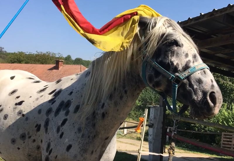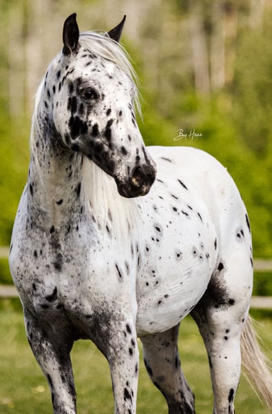 Bellissima femmina di cavallo in rara colorazione Black Leopard
