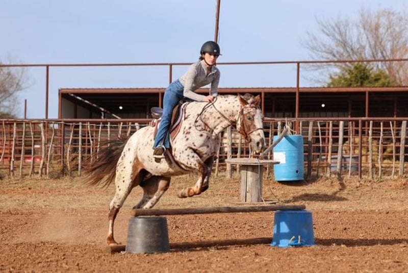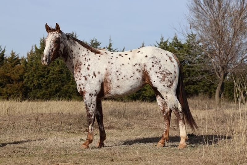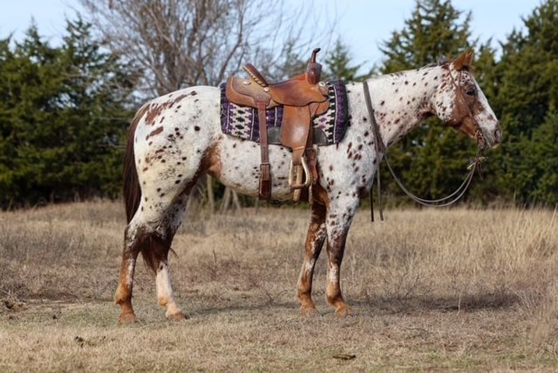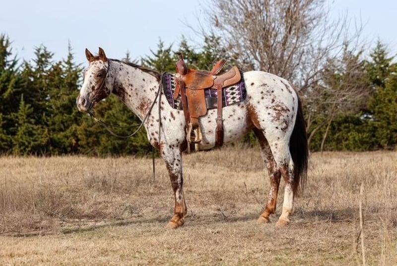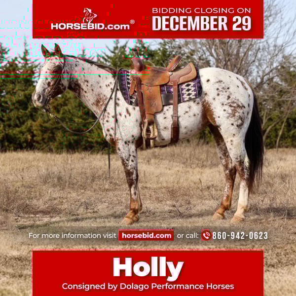 ⚜️𝐓𝐇𝐄 𝓗𝓮𝓻𝓲𝓽𝓪𝓰𝓮 𝐖𝐢𝐧𝐭𝐞𝐫 𝓒𝓵𝓪𝓼𝓼𝓲𝓬⚜️ Happening now thru MONDAY | DECEMBER 29th - Available EXCLUSIVELY on HorseBid's website! For more details and to register visit: www.Horsebid.com CONSIGNOR CONTACT: Dolago Performance Horses 860-942-0623 LOCATION: Perry, OK BREED: Appaloosa REGISTERED: Yes REGISTERED NAME: ALITA RED SUNSHINE COLOR: Appaloosa HEIGHT: 14.3 AGE: 6 GENDER: Mare Holly is a beautiful appaloosa mare with tons of chrome, eye appeal, and class. She’s the kind that turns heads everywhere she goes and backs it up with a great mind and a solid foundation. Holly has been going well in the roping pen and has been hauled to jackpots, where she shows plenty of rate, a big stop, and the ability to read cattle. She’s athletic, responsive, and has a lot of try, making her fun to ride and easy to get along with. Holly is a truly well rounded mare that has been ridden both English and western. We’ve recently started her over fences and she’s taken right to it, showing a willing attitude and seeming to genuinely enjoy jumping. She’s also been patterned on the barrels and poles, giving her a solid start for someone wanting a versatile performance prospect or an all around using horse. Outside of the arena, Holly really shines. She’s excellent on the trail and is just as comfortable riding out alone as she is in a group. She crosses water, logs, bridges, and other trail obstacles with no hesitation and takes everything in stride. She’s confident in new environments and stays level headed whether you’re riding at home or hauling her somewhere new. Holly has a one hand neck rein, has a smooth lope with pretty, balanced circles, and is soft in the bridle. She’s been exposed to a variety of situations and handles it all with a great attitude. Whether you’re looking for a rope horse, a ranch style all around, a fun jackpot horse, or something you can switch gears with and enjoy English, western, or trail riding, Holly checks a lot of boxes.