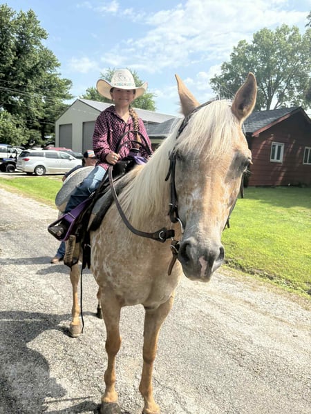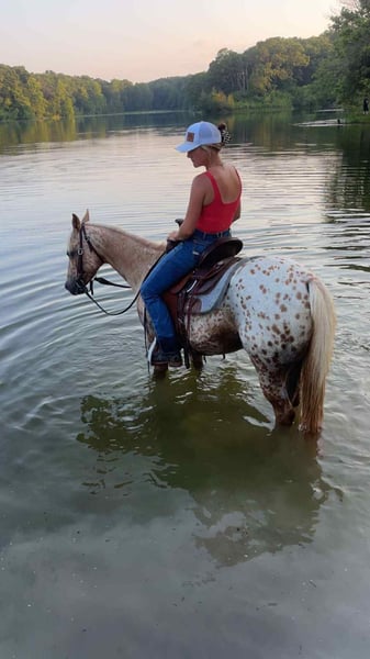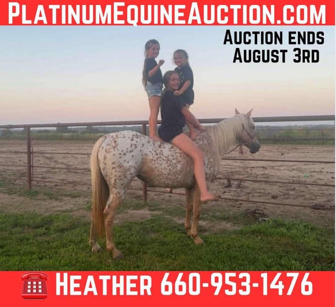 ONLINE AUCTION Place your bids at www.PlatinumEquineAuction.com Starting Bid $3500 Auction ends August 3rd, 2025 Need a new saddle? Check out White Rock Saddles on our website or Facebook Barbie is a 7-year-old mare with the kindest heart and the safest mind — the kind you wish you had ten of. Gentle, quiet, and unbelievably sweet, she has taken care of my entire family and countless lesson kids of all ages. Barbie is the ultimate confidence booster and an absolute dream on the trail — point and go, whether you’re riding alone or with a group. She handles any terrain, crosses water, and has been on multiple overnight camping trips, always traffic safe and unfazed. She rides bareback, double, and even triple without a fuss, making her the go-to horse for anyone needing reliability and safety. Barbie has been lightly started on breakaway roping and has helped push cattle around the farm. Best of all, she doesn’t need to be ridden every day — whether it’s once a week or once a month, she’s always the same trustworthy horse. She is 100% sound, stands patiently for grooming, bathing, and the farrier, hauls like a pro, and ties quietly to the trailer or picket line. With her one-of-a-kind looks and a golden mind to match, Barbie is truly a rare find. We’d love to have you come test ride Barbie and see just how special she is. We’re located in Princeton, Missouri — feel free to call or text Heather Stark 660-953-1476 to set up a time. ONLINE AUCTION Place your bids at www.PlatinumEquineAuction.com Starting Bid $3500 Auction ends August 3rd, 2025 Need a new saddle? Check out White Rock Saddles on our website or Facebook