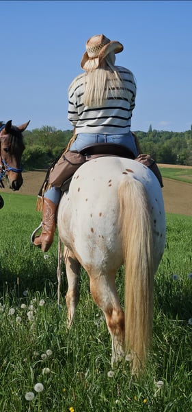 Available is a beautiful mare who will turn 9 years old this May. She is a reliable and well-schooled trail horse, suitable for both recreational riding and more experienced riders. She is fearless and well-accustomed to various situations (traffic, water, other horses, trailers, and farrier work). Appaloosa breed with a full pedigree.