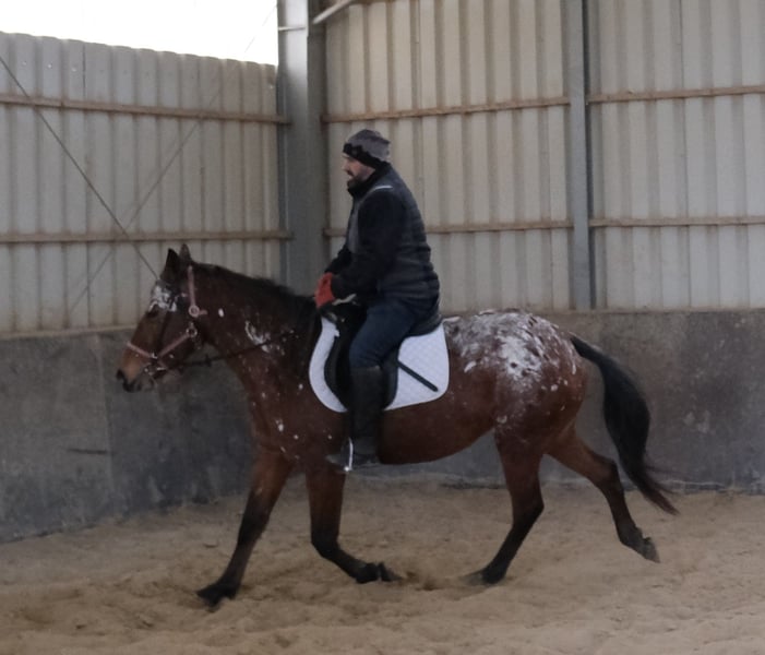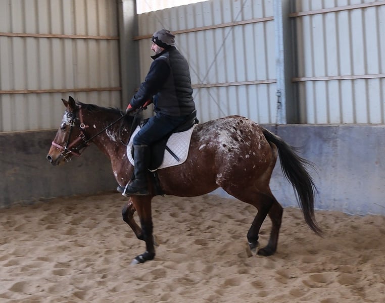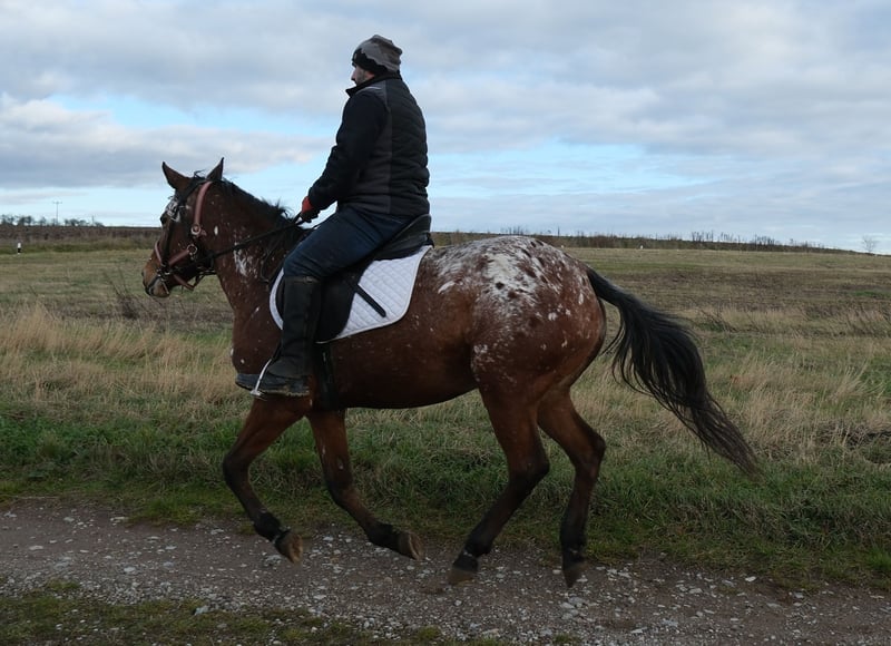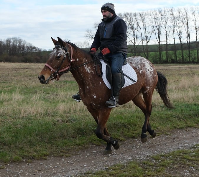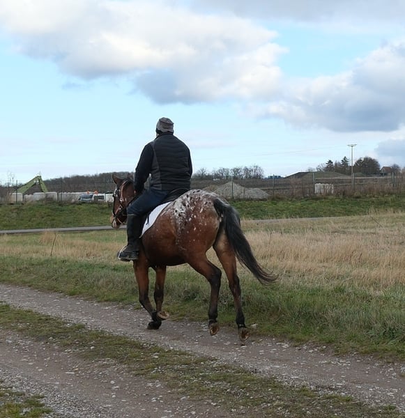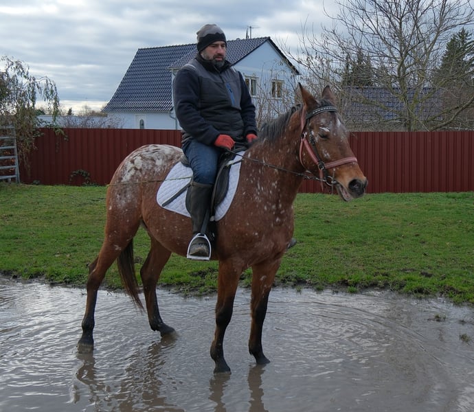 Eenvoudig en probleemloos te rijden merrie, braaf in de omgang en gemakkelijk in gebruik. Veilig in het verkeer en op het terrein. 9 jaar oud, 1,54 m hoog. Bij interesse graag bellen, geen e-mail! Geen garantie op eventuele fouten in de beschrijving! Tel.: 0173-3843407 Omdat het om een levend dier gaat, zijn dit subjectieve indrukken van de aanbieder en geen gegarandeerde eigenschappen van het paard! Altijd mooie rij- en vrijetijdspferden, evenals nieuwe koetsen van diverse modellen, voordelig te koop. Adres stal: 99628 Buttstädt, Oberwendenstraße 39