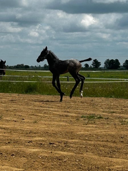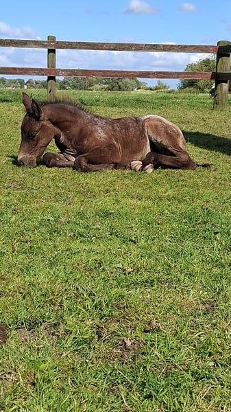 Absetzen / Stutfohlen in Sonderlackierung zu verkaufen Ich suche für mein Fohlen nach dem Absetzen ein tolles neues Zuhause. Amira ist am 26.05.2025 geboren. Ihre Mutter ist eine Appaloosa-Mix (ca. 155 cm groß) Ihr Vater (welcher nicht eingetragen ist) ist ein Holsteiner (Cocosinni/ ca 171cm ) Die Stute habe ich unwissenden tragend gekauft, daher habe ich keinen Deckschein, die Angaben zum Hengst stammen von der Vorbesitzerin. Amira ist ein elegantes Fohlen mit auffällig langen Beinen. Ihre Sonderlackierung hat sie von ihrer Mutter geerbt und macht Sie zu einem echten Hingucker. Das Fohlen ABC lernt sie kennen, spazieren gehen mit ihrer Mutter (auch an der Straße). Den Hufschmied hat Amira schon kennengelernt und auch schon mal in eine sanfte osteopatische Behandlung geschnuppert, als ihre Mutter behandelt wurde. Diese elegante junge Dame weiß sich zu präsentieren, im Umgang ist sie höflich, muss aber auch mal ihre Grenzen aufgezeigt bekommen. Fremden Menschen gegenüber ist sie zuerst etwas skeptisch, dann siegt sehr schnell die Neugierde. Ich suche ein passendes Zuhause für Amira, wo Sie optimal auf ihr weiteres Leben vorbereitet werden kann. Bei Fragen, meldet euch gerne bei mir.
