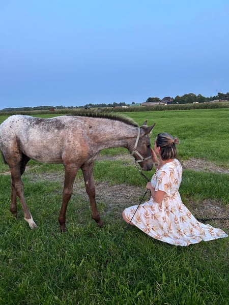Absetzen / Stutfohlen in Sonderlackierung zu verkaufen Ich suche für mein Fohlen nach dem Absetzen ein tolles neues Zuhause. Amira ist am 26.05.2025 geboren. Ihre Mutter ist eine Appaloosa-Mix (ca. 155 cm groß) Ihr Vater (welcher nicht eingetragen ist) ist ein Holsteiner (Cocosinni/ ca 171cm ) Die Stute habe ich unwissenden tragend gekauft, daher habe ich keinen Deckschein, die Angaben zum Hengst stammen von der Vorbesitzerin. Amira ist ein elegantes Fohlen mit auffällig langen Beinen. Ihre Sonderlackierung hat sie von ihrer Mutter geerbt und macht Sie zu einem echten Hingucker. Das Fohlen ABC lernt sie kennen, spazieren gehen mit ihrer Mutter (auch an der Straße). Den Hufschmied hat Amira schon kennengelernt und auch schon mal in eine sanfte osteopatische Behandlung geschnuppert, als ihre Mutter behandelt wurde. Diese elegante junge Dame weiß sich zu präsentieren, im Umgang ist sie höflich, muss aber auch mal ihre Grenzen aufgezeigt bekommen. Fremden Menschen gegenüber ist sie zuerst etwas skeptisch, dann siegt sehr schnell die Neugierde. Ich suche ein passendes Zuhause für Amira, wo Sie optimal auf ihr weiteres Leben vorbereitet werden kann. Bei Fragen, meldet euch gerne bei mir.