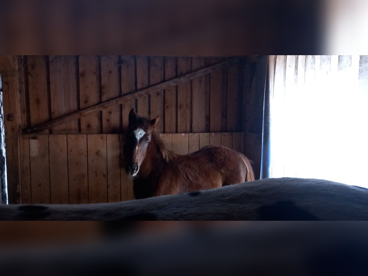 Ruhe, Gelassenheit und Fundament von seinem wunderbaren Vater der auf alle 9 momentan bekannten Panel negativ getestet wurde und trotz LP gesunde Augen hat gepaart mit Schönheit und Spritzigkeit seiner Rennsporterfolgreichen Vollblutmutter, mega schnell und schlau, wendig, genug Gummi und trittsicher wie eine Bergziege, das Ganze in absoluter Sonderfarbe, man darf gespannt sein was sich unter dem dicken chestnut Winterpelz verbirgt....einzelne Spots scheinen schon durch, er wird wohl vanish roan mit Spots werden (LP/lp) , hat alle Appi-Attribute....Zudem total selbstbewusst und mutig, menschenbezogen und freundlich. Will to please aber eigene Meinung. Fohlen ABC sitzt, Papier ist in USA beantragt. Ein Pferd für Kenner und Könner, nicht für jedermann. Kein Notverkauf, kann auch bleiben, wird dann als Hengstabwärter aufgezogen.