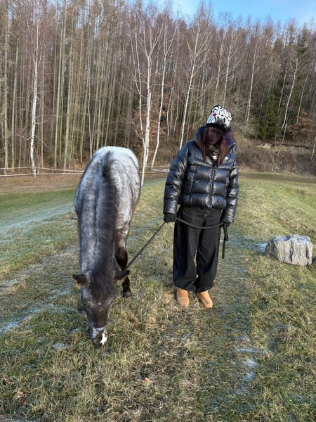 Vendo este potro de doma muy confiado, de color "Grulla" con un ojo azul, nacido el 02/08/2025. Tiene pasaporte y está vacunado. El potro conoce el alfabeto básico y acude a la llamada con un silbido, alejándose de la manada. Crece en grupo con otros potros y está muy bien socializado. Está familiarizado tanto con el establo como con el paddock abierto. Posee una coloración muy interesante, un carácter excelente y es un verdadero eye-catcher con potencial. Solo se entregará a manos responsables y que puedan ofrecerle un buen desarrollo. No es una venta de emergencia. Los padres se pueden ver en las últimas dos fotos. Mi semental no solo destaca por su conformación, sino también por su carácter ejemplar.