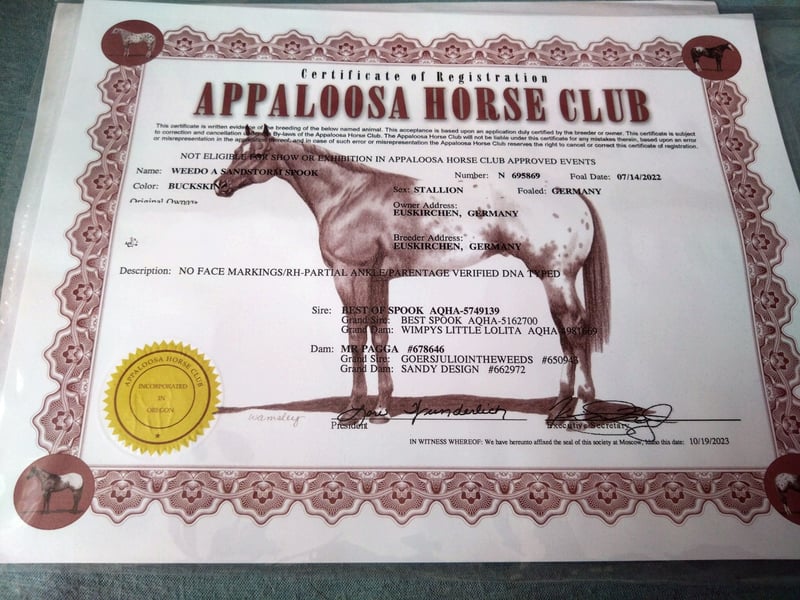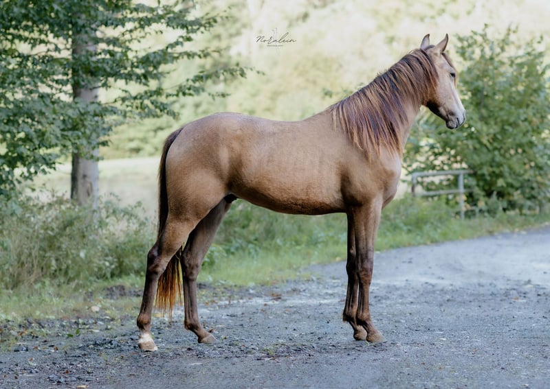 **Sales Advertisement: Beautiful Appaloosa Stallion for Sale** We are offering an impressive Appaloosa stallion from the 2022 cohort for sale. This young buckskin not only stands out with his striking coat pattern but also with his friendly nature and versatile abilities. With an expected height of 155 cm, he is ideal for riders seeking a reliable partner for Western riding. He shows great potential as a Western all-rounder and is well-suited for various disciplines. This stallion is not only a head-turner but also a loyal companion who, with the right training, can grow into a true champion. If you are looking for a talented and strong-charactered horse, this Appaloosa might be just right for you. If interested and for further information, we look forward to your message!