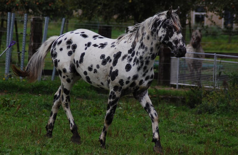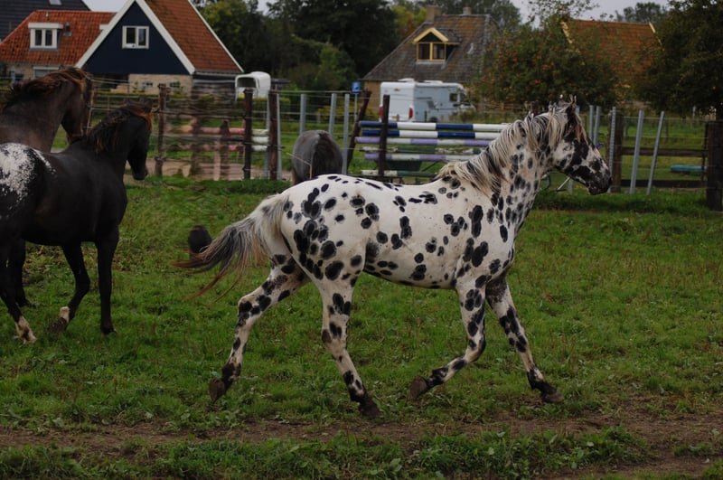 Dit paard steelt de show met zijn uitstraling en geweldige beweging. Uit de beste Nederlandse appaloosa bloedlijnen: Vader Nederlands 1e Premiekampioen Peru's First Class (met veel KWPN-bloed, zoals Krack C en Jazz) Moeder Ster merrie, reserve kampioen Moeders Vader 5-voudig Nederlands Kampioen Palousa Convenance (zijn vader is Gibraldi, de grote zwarte Grand Prix hengst die naar de Wereldbekerfinale ging met Edward Gall in Las Vegas) Heel lief en liefdevol karakter, een beetje verlegen. Kan aan een halster worden gereden, maar is nog groen in training. Wordt altijd in een groep jonge hengsten gehouden, met mensen om zich heen. Veel vrije beweging in de wei. Hij is nu op zoek naar een nieuwe eigenaar die met hem wil werken. Hoewel zijn moeder ook dressuurmatig gefokt is, houdt ze ook van springen, dus ik verwacht dat dit paard ook allround ingezet kan worden. Hij is een showman, hij is geweldig voor de camera en steelt de show met zijn indrukwekkende uitstraling. Ook andere jonge appaloosa paarden en pony's te koop.