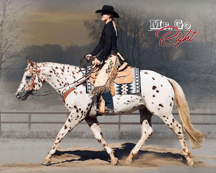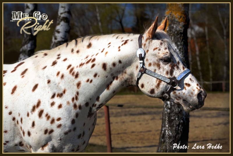 Mr Go Right (Rusty) is a registered Appaloosa stallion (ApHC and AphCG) and 5‑panel N/N. He comes from strong performance breeding with many colorful Appaloosas in his pedigree. He is sired by the leopard‑colored, money‑earning Reining and Cowhorse stallion Rusty Lil Dry Doc. Rusty’s pedigree includes numerous legendary performance stallions from Reining, Cutting, and Cowhorse lines—some of whom were also successful in Halter. This versatile mix of bloodlines makes him especially suitable for modern disciplines such as Ranch Riding. His Hall of Fame ancestors include: High Sign, High Sign Nugget, Dry Doc, Ima Doc Olena, Doc Olena, Doc Bar, Poco Bueno, Goer (twice), and Romans Straw Man. His pedigree also features other colorful and highly successful stallions such as Rustys Lil Nugget, a successful Halter Champion and multi‑discipline performer with a World Champion title in Cow Horse. Another leopard Appaloosa ancestor, Ima Dazzelena, earned recognition in Reining and reached the title of “Supreme Champion” in Germany. This outstanding breeding alone makes Mr Go Right a compelling choice as a performance sire. But what makes Rusty even more uniquely appealing is his striking appearance, excellent conformation, and impressive size (163 cm). He has the presence and quality to excel across multiple disciplines, even in Halter. His double “Goer” breeding on both sire and dam side, combined with the influence of Romans Straw Man—whose stud fee reached $10,000 in the 1980s—adds exceptional value to his pedigree. At his single show appearance in 2017, Rusty was named International Grand Champion, which immediately placed him in the Top 5 of the ApHC World Standings in both “Aged Halter Stallions” and “Most Colorful at Halter.” Three of his foals have been successfully shown in Halter up to European Championship level: – One earned a ROM in Halter by age 3. – Another became Grand Champion in a large EM class of “Geldings All Ages.” Mr Go Right is also an exceptional mover. At European Western Union (EWU) shows, he won and placed well in various performance disciplines—from Reining to Pleasure— and he earned gold and silver for two consecutive years in Dressage and Young Horse Trail at the state championships. Early in his career he showed notable talent for Ranch Riding. Because Rusty has not been shown in recent years, his high‑quality frozen semen remains available at an affordable price. Additional discounts may be offered for proven show mares or multiple mares (contact Susan Hedke or Lara Hoffmann). His frozen semen is available within the EU through Claus Georgi: 👉 https://www.westernstablegeorgi.de/besamungsstation/tg-samen-hengste 👉 https://www.westernstablegeorgi.de