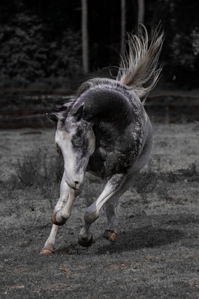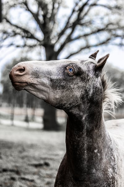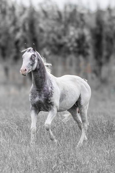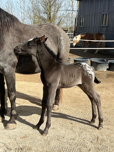 R Mighty Theo ApHC stallion 1,58 m tall https://www.allbreedpedigree.com/mr+mighty+theo PSSM 1 N/N MYHM N/N HERDA N/N GBED N/N HYPP N/N EMH N/N Splashed White N/N Ee, aa, LP/LP (black Snowcap) Purebred for the leopard gene Theo aka "Joker" is a very gentle, sensitive young stallion who still has his career as a riding horse ahead of him. He is bombproof and extremely uncomplicated. He has a stable foundation, a lively, ground covering trot and a beautiful 3-beat canter that is well set for his age. He has good uprightness and a large frame. He will be available with fresh semen at the Steinsberg stallion and breeding station in 2024