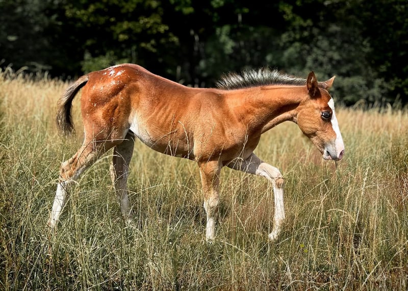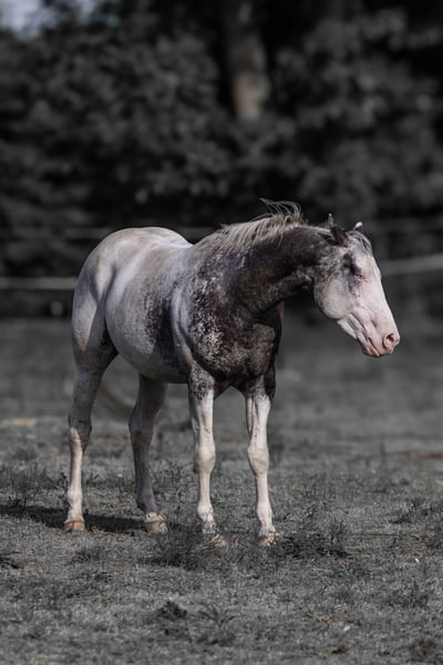 R Mighty Theo Ogier ApHC 1,58 m wzrostu https://www.allbreedpedigree.com/mr+mighty+theo PSSM 1 N/N MYHM N/N HERDA N/N GBED N/N HYPP N/N EMH N/N Splashed White N/N Ee, aa, LP/LP (czarny Snowcap) Czysta krew z genem lamparta Theo aka "Joker" to bardzo łagodny, wrażliwy młody ogier, który wciąż ma przed sobą karierę konia wierzchowego. Jest bomboodporny i niezwykle nieskomplikowany. Ma stabilne podstawy, żwawy kłus po ziemi i piękny trzytaktowy kłus, który jest dobrze ułożony jak na jego wiek. Jest wyprostowany i ma dużą ramę. Będzie dostępny ze świeżym nasieniem na stacji hodowlanej Steinsberg w 2024 roku