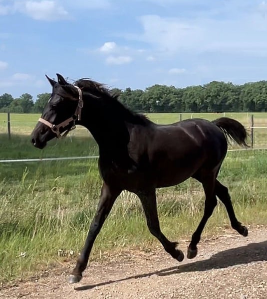 Nato a fine aprile 2024, Hadj è elegante, intelligente e affettuoso. Curioso e molto vicino all'uomo, adora essere coccolato. La dinamicità e la leggerezza delle sue andature, insieme al suo carattere equilibrato, sono punti di forza per un cavallo sportivo o da tempo libero versatile. Le origini ancestrali (vecchie linee di sangue) di Hadj possono anche destinarlo alla riproduzione. La sua crescita permette di pronosticare un'altezza da adulto superiore a 1,55 m. Hadj, come tutti i puledri, è stato maneggiato, vaccinato, sverminato e integrato. È cresciuto in gruppo e soprattutto è stato svezzato tardivamente (11 mesi). Il suo prezzo evolve con l'età e il progresso del lavoro. Sono disponibili diversi altri cavalli in vendita presso l'allevamento, consultate il sito e contattatemi via SMS per ulteriori informazioni, incluso HADJ DU GREMILLON, puledro maschio 2024 di colore nero, Purosangue Arabo. Hadj, come tutti i puledri, è stato maneggiato, vaccinato, sverminato e integrato. È cresciuto in gruppo e soprattutto è stato svezzato tardivamente (11 mesi). Il suo prezzo evolve con l'età e il progresso del lavoro. Sono disponibili diversi altri cavalli in vendita presso l'allevamento, non esitate a consultare il sito del "Haras du Gremillon" e a contattarmi via SMS per ulteriori informazioni.
