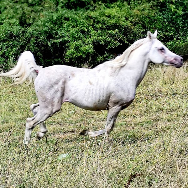 - Typowy, charyzmatyczny ogier Asil Arab dla hodowli, sportu i rekreacji - ASIL ARAB (czysto egipski / straight egyptian) - Linia M: SG (Saklawi Gidrani) - Najlepsze pochodzenie: (ANSATA AMIR ZAMAN, AUTHENTIC IBN NAWAAL (nagrodzony), MESSAOUD ogier elitarny, MAYSOUN ogier elitarny, MADKOUR, MORAFIC) - Duże oczy - Bardzo wyrazista twarz - Wysoko inteligentny, bardzo uważny i chętny do nauki - Bardzo obecny (doskonale wie, jak się zaprezentować) - Długo osadzona łopatka - Wysoko osadzony, długi, zakrzywiony szyja z wysokim ustawieniem - Super poprawna budowa (w typie kwadratowym) - Długa zad - Silne stawy i dobre kopyta - Super GGA (bardzo dobry krok) - Bardzo towarzyski i przywiązany do ludzi - Wita swoich bliskich już z daleka - Super kontaktowy, z którym można wszystko robić - Stabilny nerwowo (skała w burzy!) - Przyjazny kowalowi i do transportu - Koń o wyjątkowym charakterze - Ostatnie 10 zdjęć pokazuje jego charyzmatycznego ojca AL CHADIM SAHEED i jego piękną matkę AL CHADIM GAZIA Cena sprzedaży: VHB 9.500,- Euro