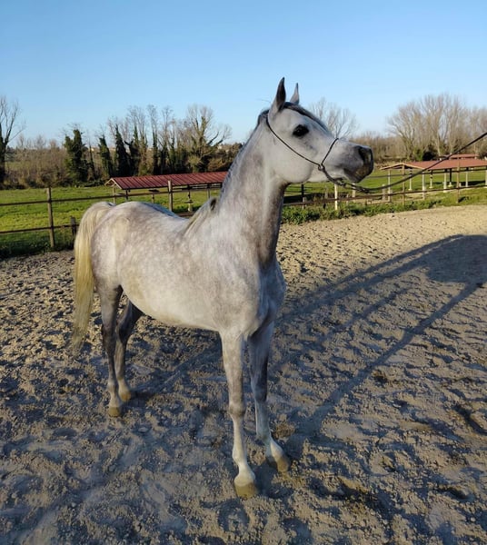 Excellent temperament and pedigree. Ready for breaking in, male born in 2018, with ANICA ECAHO documentation. Excellent conformation for endurance and equestrian sports. Withers height: 152 cm. Available at the Arabian Valley Stud Equestrian Center – Arabian Horses – Rimini, Italy. For more information, contact via mobile and/or WhatsApp: +39 329 4260897 / +39 347 7760055. #ArabianHorses Endurance Sport